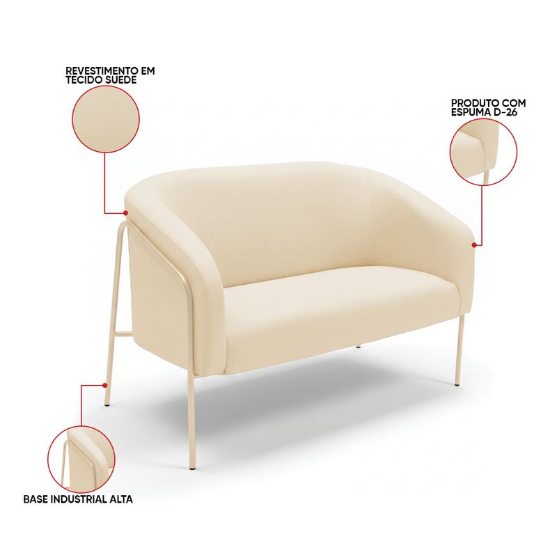 A Namoradeira Stella Base Alta Suede Bege é um móvel que une design moderno, conforto e sofisticação, ideal para compor salas de estar, recepções e ambientes decorativos. Seu formato elegante e estrutura elevada valorizam o espaço, trazendo leveza e requinte à decoração. Produzida com estrutura em madeira de eucalipto reflorestado e base em aço tubular na cor champanhe, garante durabilidade, estabilidade e resistência. O assento em espuma D-26 proporciona firmeza e conforto, enquanto o encosto e os braços em espuma D-23 oferecem um toque macio e ergonômico, se adaptando perfeitamente a diferentes estilos de decoração, do clássico ao contemporâneo. A namoradeira é perfeita para quem busca um sofá pequeno e sofisticado, unindo beleza, qualidade e conforto. O acabamento refinado e o design atemporal fazem dessa peça uma excelente escolha para transformar o ambiente com elegância e estilo. Dimensões do Produto: Altura Total: 80 cm Largura Total: 120 cm Profundidade Total: 63 cm Altura Interna do Encosto: 39 cm Espessura do Braço: 13 cm Altura do Braço ao chão: 70 cm Profundidade do Assento: 45 cm Altura do chão ao Assento: 45 cm Peso: 19 kg Especificações do Produto: Estrutura: Madeira Eucalipto; Base em Aço Revestimento: Suede Material do Estofamento: Assento D-26; Encosto e braço D-23 Quantidade de Lugares : 2 Lugares Sofá Possui Braça: Não Peso Suportado: Até 120 Kg Tipo de Pés: Base Industrial Tubular Alta Tipo de Encosto: Fixo Tipo de Assento: Fixo É retrátil: Não É reclinável: Não Diferenciais: Modelo Orgânico; Design moderno e acolherdor, ideal para duas pessoas. Montagem: O produto vai montado, apenas parafusar a base Complexidade da Montagem: Baixa Garantia: 90 dias contra defeito de fabricação Instruções de Limpeza: Utilizar um pano limpo e levemente úmido Quantidade de Volumes: 1 Caixa Medida das Embalagens: Caixa 1 : 119 x 69 x 59 cm Peso Produto Embalado: 21 kg Entrega: É feita somente até o térreo ou portaria. Confira sempre as medidas das embalagens para assegurar que o produto passe por portas e escadas do local.