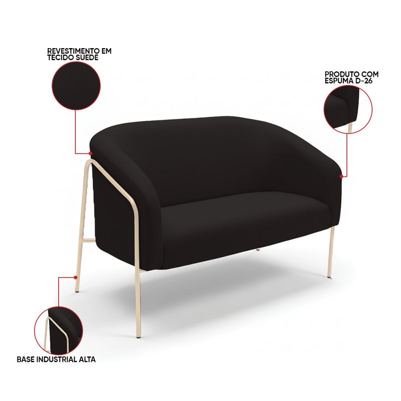 A Namoradeira Stella Base Alta Suede Preto é um móvel que une design moderno, conforto e sofisticação, ideal para compor salas de estar, recepções e ambientes decorativos. Seu formato elegante e estrutura elevada valorizam o espaço, trazendo leveza e requinte à decoração. Produzida com estrutura em madeira de eucalipto reflorestado e base em aço tubular na cor champanhe, garante durabilidade, estabilidade e resistência. O assento em espuma D-26 proporciona firmeza e conforto, enquanto o encosto e os braços em espuma D-23 oferecem um toque macio e ergonômico, se adaptando perfeitamente a diferentes estilos de decoração, do clássico ao contemporâneo. A namoradeira é perfeita para quem busca um sofá pequeno e sofisticado, unindo beleza, qualidade e conforto. O acabamento refinado e o design atemporal fazem dessa peça uma excelente escolha para transformar o ambiente com elegância e estilo. Dimensões do Produto: Altura Total: 80 cm Largura Total: 120 cm Profundidade Total: 63 cm Altura Interna do Encosto: 39 cm Espessura do Braço: 13 cm Altura do Braço ao chão: 70 cm Profundidade do Assento: 45 cm Altura do chão ao Assento: 45 cm Peso: 19 kg Especificações do Produto: Estrutura: Madeira Eucalipto; Base em Aço Revestimento: Suede Material do Estofamento: Assento D-26; Encosto e braço D-23 Quantidade de Lugares : 2 Lugares Sofá Possui Braça: Não Peso Suportado: Até 120 Kg Tipo de Pés: Base Industrial Tubular Alta Tipo de Encosto: Fixo Tipo de Assento: Fixo É retrátil: Não É reclinável: Não Diferenciais: Modelo Orgânico; Design moderno e acolherdor, ideal para duas pessoas. Montagem: O produto vai montado, apenas parafusar a base Complexidade da Montagem: Baixa Garantia: 90 dias contra defeito de fabricação Instruções de Limpeza: Utilizar um pano limpo e levemente úmido Quantidade de Volumes: 1 Caixa Medida das Embalagens: Caixa 1 : 119 x 69 x 59 cm Peso Produto Embalado: 21 kg Entrega: É feita somente até o térreo ou portaria. Confira sempre as medidas das embalagens para assegurar que o produto passe por portas e escadas do local.