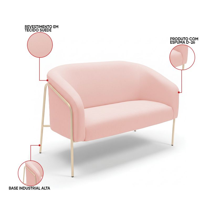 A Namoradeira Stella Base Alta Suede Rosa Bebê é um móvel que une design moderno, conforto e sofisticação, ideal para compor salas de estar, recepções e ambientes decorativos. Seu formato elegante e estrutura elevada valorizam o espaço, trazendo leveza e requinte à decoração. Produzida com estrutura em madeira de eucalipto reflorestado e base em aço tubular na cor champanhe, garante durabilidade, estabilidade e resistência. O assento em espuma D-26 proporciona firmeza e conforto, enquanto o encosto e os braços em espuma D-23 oferecem um toque macio e ergonômico, se adaptando perfeitamente a diferentes estilos de decoração, do clássico ao contemporâneo. A namoradeira é perfeita para quem busca um sofá pequeno e sofisticado, unindo beleza, qualidade e conforto. O acabamento refinado e o design atemporal fazem dessa peça uma excelente escolha para transformar o ambiente com elegância e estilo. Dimensões do Produto: Altura Total: 80 cm Largura Total: 120 cm Profundidade Total: 63 cm Altura Interna do Encosto: 39 cm Espessura do Braço: 13 cm Altura do Braço ao chão: 70 cm Profundidade do Assento: 45 cm Altura do chão ao Assento: 45 cm Peso: 19 kg Especificações do Produto: Estrutura: Madeira Eucalipto; Base em Aço Revestimento: Suede Material do Estofamento: Assento D-26; Encosto e braço D-23 Quantidade de Lugares : 2 Lugares Sofá Possui Braça: Não Peso Suportado: Até 120 Kg Tipo de Pés: Base Industrial Tubular Alta Tipo de Encosto: Fixo Tipo de Assento: Fixo É retrátil: Não É reclinável: Não Diferenciais: Modelo Orgânico; Design moderno e acolherdor, ideal para duas pessoas. Montagem: O produto vai montado, apenas parafusar a base Complexidade da Montagem: Baixa Garantia: 90 dias contra defeito de fabricação Instruções de Limpeza: Utilizar um pano limpo e levemente úmido Quantidade de Volumes: 1 Caixa Medida das Embalagens: Caixa 1 : 119 x 69 x 59 cm Peso Produto Embalado: 21 kg Entrega: É feita somente até o térreo ou portaria. Confira sempre as medidas das embalagens para assegurar que o produto passe por portas e escadas do local.