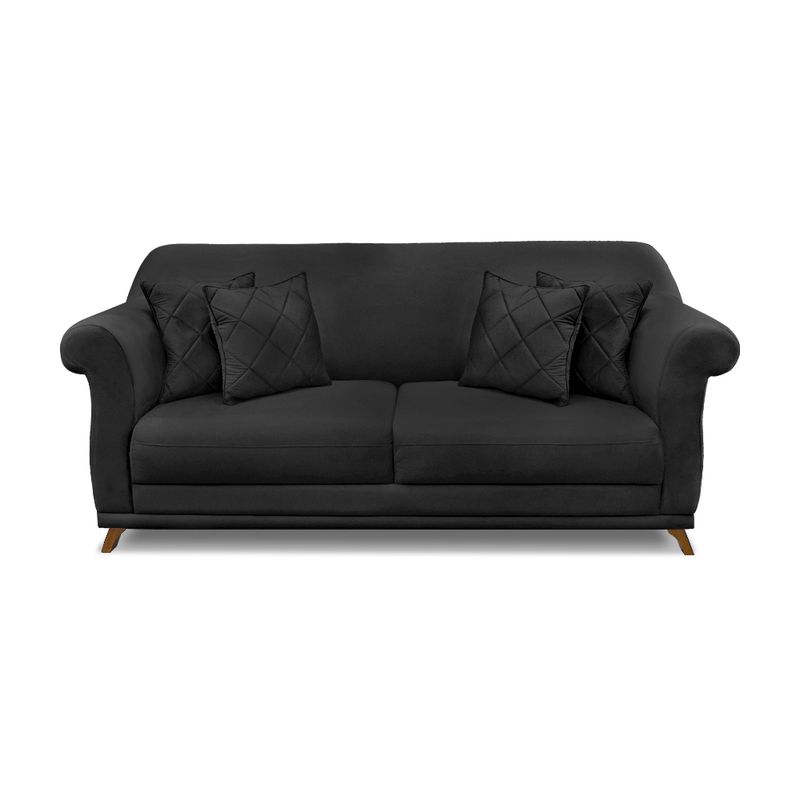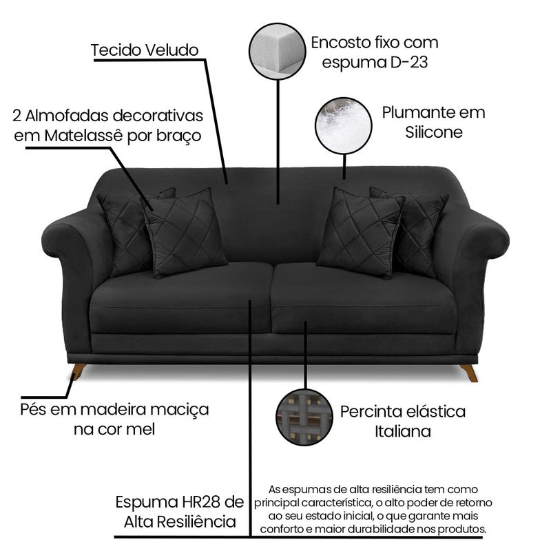 O Sofá 2 Lugares Julieta é uma mobília que combina elegância, conforto e durabilidade. Ele tem um design moderno e sofisticado, com pés em madeira maciça na cor mel e revestimento em tecido Veludo Preto, que harmonizam com qualquer ambiente. Ele é ideal para sala de estar, recepções ou qualquer outro espaço que você queira decorar com estilo e bom gosto. Ele tem uma estrutura em madeira de reflorestamento eucalipto, que garante a resistência e a sustentabilidade do produto. Com medidas de 160 cm ele suporta até 120 Kg de peso, podendo ser utilizado por pessoas de diferentes biotipos. Ele tem um acabamento reforçado com espuma de qualidade no encosto D23 e plumante em silicone, que oferece maciez e aconchego. Acompanha 2 almofadas decorativas ( Enchimento fibra de silicone) bordadas em matelassê por braço. Ele tem assento Fixo com percintas elásticas italiana, espuma HR 28 e plumante em silicone, que proporcionam flexibilidade e conforto. Tem pés em madeira maciça com altura de 12 cm, que protegem o produto contra corrosão e desgaste. O sofá Julieta é um produto de alta qualidade, beleza e funcionalidade. Ele é fácil de transportar, pois tem um peso leve e um tamanho compacto. O sofá Julieta é um produto que vai fazer a diferença na sua decoração e no seu bem-estar. Ela vai trazer charme, conforto e durabilidade para o seu ambiente. Aproveite essa oferta e leve para casa um sofá de qualidade por um preço incrível. Essa é a sua chance de ter um sofá maravilhoso por um preço imperdível. Corra e garanta o seu antes que acabe o estoque! Dimensões do Sofá: Altura total: 90 cm Largura total: 160 cm Profundidade total: 82 cm Peso: 43 kg Altura do Braço: 74 cm Altura do chão ao Assento: 45 cm Altura do Encosto: 45 cm Profundidade do Assento: 55 cm Largura do Braço: 22 cm Altura dos pés: 12 cm Especificações do Produto Estrutura: Madeira de Eucalipto Reflorestada Espuma: D-23 Tipo de Encosto: Fixo com Plumante em Silicone Tipo de Assento: Fixo com Espuma HR 28, Percinta Elástica Italiana Quantidade de Lugares: 2 Lugares Tecido: Veludo Diferenciais: Acompanha 02 Almofadas Decorativas em Matelassê por Braço Tipo de pés: Pés Madeira Maciça na cor Mel Peso suportado: Até 120 Kg Garantia: 90 dias contra defeito de fabricação Montagem: O produto é enviado montado, sendo necessário somente parafusar os pés Instruções de limpeza: Utilizar um pano limpo e levemente úmido Você irá receber: 01 Sofá Entregue em: 01 Volume