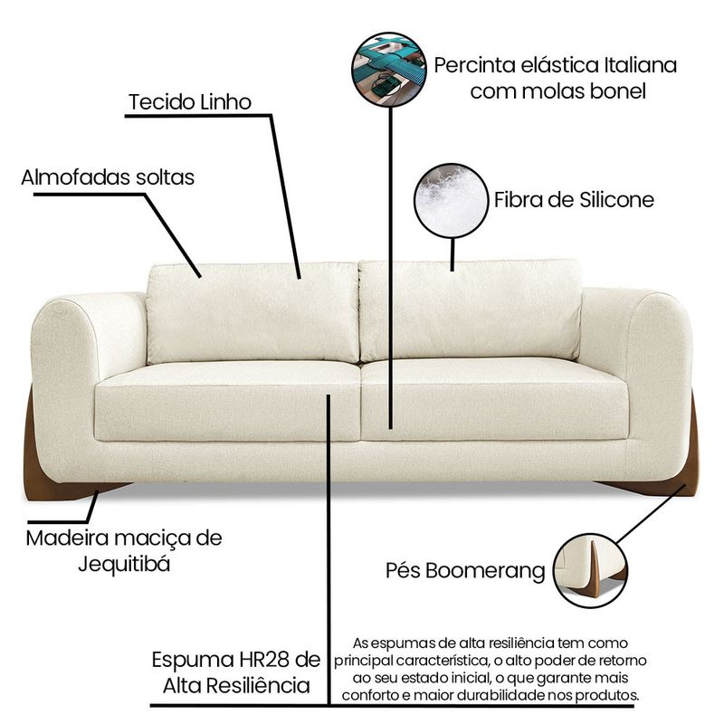 O Sofá 3 Lugares Clarissa é uma mobília que combina elegância, conforto e durabilidade. Ele tem um design moderno e sofisticado, com pés Boomerang, e revestimento em tecido Linho Rústico Natural, que harmonizam com qualquer ambiente. Ele é ideal para sala de estar, recepções ou qualquer outro espaço que você queira decorar com estilo e bom gosto. Ele tem uma estrutura em madeira de reflorestamento eucalipto, que garante a resistência e a sustentabilidade do produto. Com medidas de 250 cm ele suporta até 180 kg de peso, podendo ser utilizado por pessoas de diferentes biotipos. Ele tem um acabamento reforçado com espuma de qualidade no encosto D23 e plumante em silicone, que oferece maciez e aconchego. Acompanha 2 Almofadas soltas em fibra de silicone. Ele tem assento Fixo com inúmeras elásticas italiana, molas bonnel e espuma HR 28 e plumante em silicone, que proporcionam flexibilidade e conforto. Tem pés Boomerang em Madeira de Jequitibá, alt. 8 cm, cor mel, que protegem o produto contra corrosão e desgaste. O sofá Clarissa é um produto de alta qualidade, beleza e funcionalidade. Ele é fácil de transportar, pois tem um peso leve e um tamanho compacto. O sofá Clarissa é um produto que vai fazer a diferença na sua decoração e no seu bem-estar. Ela vai trazer charme, conforto e durabilidade para o seu ambiente. Aproveite essa oferta e leve para casa um sofá de qualidade por um preço incrível. Essa é a sua chance de ter um sofá maravilhoso por um preço imperdível. Corra e garanta o seu antes que acabe o estoque! Dimensões do Sofá: Altura total: 88 cm Largura total: 250 cm Profundidade total: 90 cm Peso: 82 kg Altura do Braço: 74 cm Altura do chão ao Assento: 44 cm Altura do Encosto: 44 cm Profundidade do Assento: 55 cm Largura do Braço: 30 cm Altura dos pés: 8 cm Especificações do Produto Estrutura: Madeira Eucalipto Reflorestada Densidade da Espuma: HR28 Tipo de Encosto: Almofadas soltas em fibra de silicone Almofada do Encosto: Removível Tipo de Acabamento: Costura Italiana Tipo de Assento: Fixo com percintas elásticas italiana, molas bonel e espuma HR28 + plumante em silicone Quantidade de Lugares: 3 Lugares Retrátio e Reclinável: Não Tecido: Linho Tipo de pés: Pés Boomerang em Madeira Jequitibá na cor Mel Peso suportado: Até 180 Kg Garantia: 90 dias contra defeito de fabricação Montagem: O produto é enviado montado Instruções de limpeza: Utilizar um pano limpo e levemente úmido Você irá receber: 01 Sofá Entregue em: 01 Volume