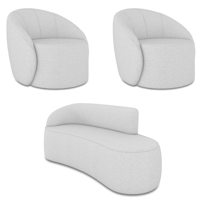 O Kit Sofá 3 Lugares Orgânico 180cm Morgan e 2 Poltronas Lua é um verdadeiro convite ao relaxamento! Ele possui um design orgânico que remete às formas encontradas na natureza que além de se moldar ao corpo humano, evoca uma sensação de calma e equilíbrio criando um espaço acolhedor e relaxante. O revestimento desse maravilhoso conjunto conta com um tecido extremamente elegante no Linho, suportando em média até 240 kg de peso, podendo ser utilizado por pessoas de diferentes biotipos. A Poltrona Lua contém uma simetria artística e curvas suaves, ela contém uma Base Giratória com giro em 360 graus e uma estrutura em madeira de reflorestamento eucalipto, que garante a resistência e a sustentabilidade do produto. Ela tem um acabamento reforçado e espuma de qualidade D23, que oferece maciez e conforto. Ela contém detalhes de costura no encosto e um assento cilíndrico arredondado resultando em um acabamento perfeito conferindo muito mais valor e personalizado ao produto, oferecendo maior liberdade de movimento ao cliente. O Sofá Morgan por sua vez é uma combinação perfeita de conforto e estilo. Com uma estrutura robusta de madeira de eucalipto e MDF, este sofá garante durabilidade e resistência. Os assentos e encostos são fixos, o encosto é preenchido com espuma D-20, proporcionando suporte ideal para suas costas, enquanto o assento com espuma D-23 oferece uma experiência de assento firme e aconchegante. Seu formato curvo e sem braços traz um toque de modernidade, permitindo que o sofá se encaixe harmoniosamente em diversos estilos de decoração, desde o minimalista até o mais ousado. As sapatas plásticas são pequenas proteções colocadas na base dos pés do sofá para evitar que eles risquem ou danifiquem o chão. Além de proteger o piso, essas sapatas ajudam a distribuir o peso do sofá de maneira mais uniforme. Esse lindo conjunto pode ser utilizado em salas de estar, recepções, escritórios, lojas, espaços comerciais, ou qualquer outro espaço que você queira decorar com estilo e bom gosto. O kit Sofá Morgan e 2 Poltronas Lua é um produto que vai fazer a diferença na sua decoração e no seu bem-estar. Ele vai trazer charme, conforto e durabilidade para o seu ambiente. Corra e garanta o seu agora mesmo! OBSERVAÇÃO IMPORTANTE: A entrega é realizada no endereço informado, não realizamos o transporte para andares superiores, como subir escadas, elevadores ou guinchos. Não realizamos montagens, desmontagens ou instalações. Todos esses serviços são de responsabilidade do comprador. Dimensões da Poltrona: Altura Total: 85 cm Largura Total: 91 cm Profundidade Total: 93 cm Altura do Encosto: 42 cm Largura do Assento: 62 cm Profundidade do Assento: 63 cm Altura do Assento: 40 cm Altura do chão ao Assento: 45 cm Largura do encosto: 87 cm Altura dos Pés: 5 cm Peso: 30 kg Dimensões do Sofá: Altura Total: 80 cm Largura Total: 180 cm Profundidade Total: 70 cm Altura do Encosto: 40 cm Largura total livre do Assento: 180 cm Profundidade do Assento: 55 cm Altura dos Pés: 2 cm Altura do chão ao Assento: 45 cm Peso: 25 kg Especificações do Produto: Estrutura: Madeira Eucalipto Reflorestada e MDF Revestimento: Linho Material do Estofamento da Poltrona: D-23, Manta Acrílica e Percintas Elásticas Material do Estofamento do Sofá: Assento D-23; Encosto D-20 e Percintas Elásticas Quantidade de Lugares do Sofá : 3 Lugares Sofá Possui Braça: Não Peso Suportado: Até 240 kg Tipo de Pés: Poltrona com Base Giratória e Sapata Plástica PVC Material da Base da Poltrona: Aço Carbono Tipo de Encosto: Fixo Diferenciais: Design orgânico.Tecido de alta qualidade. Necessita de Montagem: Não Garantia: 90 dias contra defeito de fabricação Instruções de Limpeza: Utilizar um pano limpo e levemente úmido Você irá Receber: 02 Poltronas Giratória e 01 Sofá Orgânico - Entregue em: 02 Volumes
