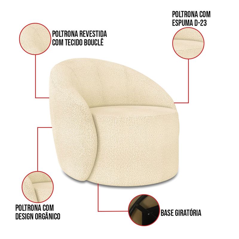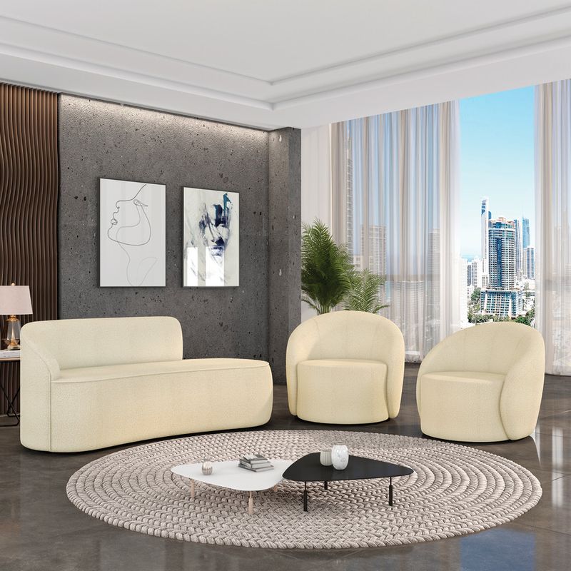 O Kit Sofá 3 Lugares Orgânico 180cm Morgan e 2 Poltronas Lua é um verdadeiro convite ao relaxamento! Ele possui um design orgânico que remete às formas encontradas na natureza que além de se moldar ao corpo humano, evoca uma sensação de calma e equilíbrio criando um espaço acolhedor e relaxante. O revestimento desse maravilhoso conjunto conta com um tecido extremamente elegante no Bouclê, suportando em média até 240 kg de peso, podendo ser utilizado por pessoas de diferentes biotipos. A Poltrona Lua contém uma simetria artística e curvas suaves, ela contém uma Base Giratória com giro em 360 graus e uma estrutura em madeira de reflorestamento eucalipto, que garante a resistência e a sustentabilidade do produto. Ela tem um acabamento reforçado e espuma de qualidade D23, que oferece maciez e conforto. Ela contém detalhes de costura no encosto e um assento cilíndrico arredondado resultando em um acabamento perfeito conferindo muito mais valor e personalizado ao produto, oferecendo maior liberdade de movimento ao cliente. O Sofá Morgan por sua vez é uma combinação perfeita de conforto e estilo. Com uma estrutura robusta de madeira de eucalipto e MDF, este sofá garante durabilidade e resistência. Os assentos e encostos são fixos, o encosto é preenchido com espuma D-20, proporcionando suporte ideal para suas costas, enquanto o assento com espuma D-23 oferece uma experiência de assento firme e aconchegante. Seu formato curvo e sem braços traz um toque de modernidade, permitindo que o sofá se encaixe harmoniosamente em diversos estilos de decoração, desde o minimalista até o mais ousado. As sapatas plásticas são pequenas proteções colocadas na base dos pés do sofá para evitar que eles risquem ou danifiquem o chão. Além de proteger o piso, essas sapatas ajudam a distribuir o peso do sofá de maneira mais uniforme. Esse lindo conjunto pode ser utilizado em salas de estar, recepções, escritórios, lojas, espaços comerciais, ou qualquer outro espaço que você queira decorar com estilo e bom gosto. O kit Sofá Morgan e 2 Poltronas Lua é um produto que vai fazer a diferença na sua decoração e no seu bem-estar. Ele vai trazer charme, conforto e durabilidade para o seu ambiente. Corra e garanta o seu agora mesmo! OBSERVAÇÃO IMPORTANTE: A entrega é realizada no endereço informado, não realizamos o transporte para andares superiores, como subir escadas, elevadores ou guinchos. Não realizamos montagens, desmontagens ou instalações. Todos esses serviços são de responsabilidade do comprador. Dimensões da Poltrona: Altura Total: 85 cm Largura Total: 91 cm Profundidade Total: 93 cm Altura do Encosto: 42 cm Largura do Assento: 62 cm Profundidade do Assento: 63 cm Altura do Assento: 40 cm Altura do chão ao Assento: 45 cm Largura do encosto: 87 cm Altura dos Pés: 5 cm Peso: 30 kg Dimensões do Sofá: Altura Total: 80 cm Largura Total: 180 cm Profundidade Total: 70 cm Altura do Encosto: 40 cm Largura total livre do Assento: 180 cm Profundidade do Assento: 55 cm Altura dos Pés: 2 cm Altura do chão ao Assento: 45 cm Peso: 25 kg Especificações do Produto: Estrutura: Madeira Eucalipto Reflorestada e MDF Revestimento: Bouclê Material do Estofamento da Poltrona: D-23, Manta Acrílica e Percintas Elásticas Material do Estofamento do Sofá: Assento D-23; Encosto D-20 e Percintas Elásticas Quantidade de Lugares do Sofá : 3 Lugares Sofá Possui Braça: Não Peso Suportado: Até 240 kg Tipo de Pés: Poltrona com Base Giratória e Sapata Plástica PVC Material da Base da Poltrona: Aço Carbono Tipo de Encosto: Fixo Diferenciais: Design orgânico.Tecido de alta qualidade. Necessita de Montagem: Não Garantia: 90 dias contra defeito de fabricação Instruções de Limpeza: Utilizar um pano limpo e levemente úmido Você irá Receber: 02 Poltronas Giratória e 01 Sofá Orgânico - Entregue em: 02 Volumes