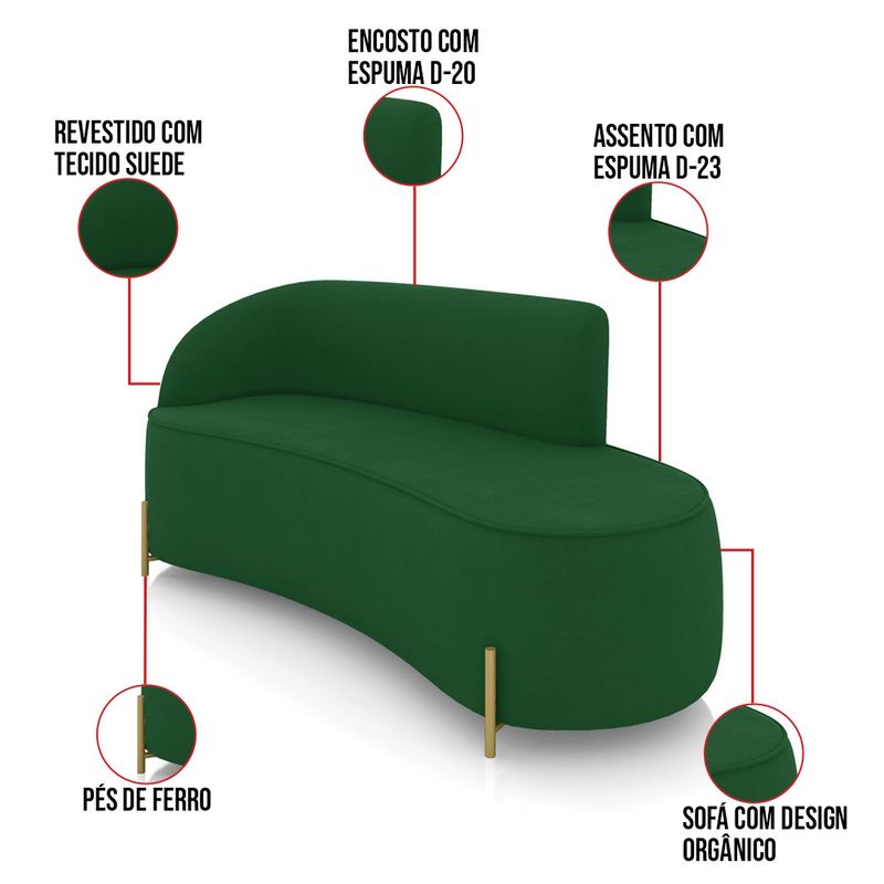 O Sofá 3 Lugares Orgânico Morgan de 180 cm, é a combinação perfeita de conforto e estilo. Com uma estrutura robusta de madeira de eucalipto e MDF, este sofá garante durabilidade e resistência. Os assentos e encostos são fixos, o encosto é preenchido com espuma D-20, proporcionando suporte ideal para suas costas, enquanto o assento com espuma D-23 oferece uma experiência de assento firme e aconchegante. O design orgânico remete às formas encontradas na natureza como ondas, folhas ou conchas que além de se moldarem ao corpo humano, evocam uma sensação de calma e equilíbrio. Seu formato curvo e sem braços traz um toque de modernidade, permitindo que o sofá se encaixe harmoniosamente em diversos estilos de decoração, desde o minimalista até o mais ousado. A fluidez das linhas cria um ambiente acolhedor e convidativo, perfeito para qualquer ocasião. Os pés de ferro, além de fornecerem estabilidade, trazem um toque industrial que contrasta lindamente com o elegante revestimento em Suede na sofisticada cor Verde. Seja para receber amigos, relaxar após um dia longo ou simplesmente adicionar um toque de elegância ao seu lar, o Sofá Orgânico é a escolha ideal. Não perca a oportunidade de elevar a decoração da sua casa com esta peça única. Adquira já o seu e descubra o que é conforto e estilo em um só lugar! OBSERVAÇÃO IMPORTANTE: A entrega é realizada no endereço informado, não realizamos o transporte para andares superiores, como subir escadas, elevadores ou guinchos. Não realizamos montagens, desmontagens ou instalações. Todos esses serviços são de responsabilidade do comprador. Dimensões do Produto: Altura Total: 80 cm Largura Total: 180 cm Profundidade Total: 70 cm Tamanho dos pés: 5 cm Peso: 28 kg Outras Medidas: Altura Interna do Encosto: 40 cm Altura do Assento ao Chão: 45 cm Largura Interna do Assento: 180 cm Profundidade Interna do Assento: 55 cm Especificações do Produto: Estrutura: Madeira Eucalipto e MDF Espuma do Encosto: D-23 Espuma do Assento: D-20 Percintas Elásticas Revestimento: Suede Possui Pés: Sim Tipo de Pés: Pés de Ferro Dourado Peso Suportado: Até 240 Kg Quantidade de Lugares: 3 Lugares Tipo de Encosto: Fixo Tipo de Assento: Fixo É retrátil: Não É reclinável: Não Diferenciais: Design Orgânico Montagem: Produto entregue montado. Garantia: 90 dias contra defeito de fabricação Instruções de Limpeza: Utilizar um pano limpo e levemente úmido Você irá Receber: 01 Sofá Entregue em: 01 Volume