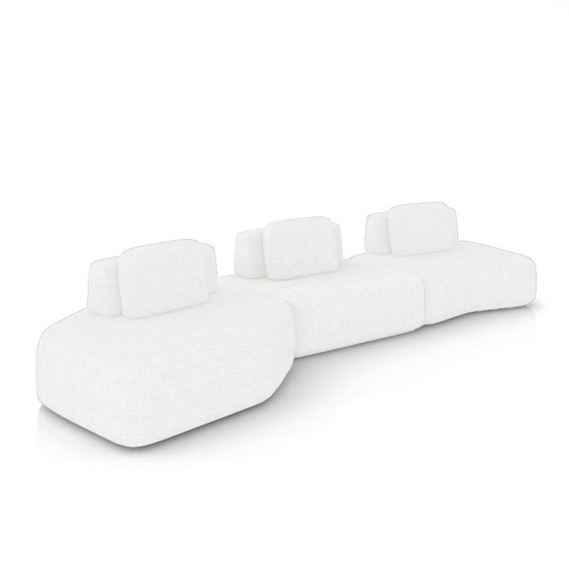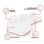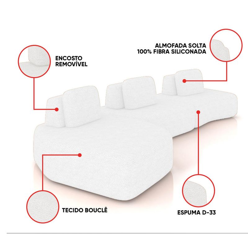Transforme sua sala de estar com o kit Sofá 3 Lugares Orgânico Berlim, composto por 01 Módulo Chaise, 01 Módulo Central e 01 Módulo de Canto, com largura total de 480 cm, em uma cor elegante no Off White, revestido em Bouclê para um toque macio e visual sofisticado. Seu design moderno e minimalista exibe linhas suaves e contornos arredondados, criando um visual elegante que harmoniza com diferentes estilos de decoração. Por ser modular, o conjunto permite diversas composições: eles podem ser integrados a outros peças para formar sofás amplos ou utilizados separadamente como assentos adicionais. O tecido confere toque macio e aparência sofisticada, enquanto a estrutura em madeira de eucalipto com reforços em MDF assegura resistência e durabilidade prolongada. O assento fixo, composto por molas espirais, percintas elásticas e espuma D-33 de alta densidade, proporciona conforto contínuo. Já o encosto solto (Ilha) e as almofadas extra ampliam a sensação de bem-estar. Um conjunto sofisticado e flexível, ideal para sala de estar, escritório ou espaço de convivência. Dimensões Gerais dos Módulos: Altura Total (base/encosto): 72 cm Largura Total: 480 cm Profundidade: Dê 110 a 140 cm Peso Total: 56 kg Dimensões do Módulo Chaise: Altura Total (base/encosto): 72 cm Largura Total: 165 cm Profundidade: Dê 110 a 140 cm Altura do Assento (do chão): 42 cm Peso Total: 20 kg Dimensões do Módulo Central: Altura Total (base/encosto): 72 cm Largura Total: 140 cm Profundidade: Dê 110 a 140 cm Altura do Assento (do chão): 42 cm Peso Total: 18 kg Dimensões do Módulo Canto: Altura Total (base/encosto): 72 cm Largura Total: 175 cm Profundidade (Variável, conforme a posição do encosto): Dê 110 a 120 cm Altura do Assento (do chão): 42 cm Peso Total: 18 kg Medidas do Encosto e Almofada: Encosto (Ilha): 30cm (A) x 95cm (L) Almofada (Solta): 45cm (A) x 65cm (L) OBSERVAÇÃO IMPORTANTE: Disponibilizamos duas imagens de croqui que demonstram diferentes formas de montagem do sofá. A profundidade dos módulos varia conforme a posição do encosto. Especificações do Produto: Estrutura: Madeira de Eucalipto; Reforços com cantoneiras e chapas em MDF Base: Encosto em fibra siliconada e espuma; assento com percintas elásticas e mola espiral. Espuma do Assento: D-33 (alta qualidade) Revestimento: Bouclê Possui Braços: Não Possui Pés: Sim Material dos Pés: Madeira, fixação por parafusos Possui Rodízios: Não Peso Suportado: Até 150 Kg por módulo Tipo de Encosto: Encosto solto, com enchimento em fibra siliconada Tipo de Assento: Assento fixo, com sustentação de molas e percintas Modularidade: Acompanha almofada solta (100% fibra siliconada); Inclui ilhas com manta acrílica. É Retrátil: Não É Reclinável: Não Diferenciais: Design orgânico e modular, com encosto solto e removível; Módulo independente, podendo ser utilizado sozinho ou combinado com outros módulos da mesma linha. Montagem: O produto é enviado montado Garantia: 90 dias contra defeito de fabricação Instruções de Limpeza: Utilizar um pano limpo e levemente úmido Quantidade de Volumes: 3 Caixas Medida das Embalagens: Caixa 1: 170 x 140 x 65 cm; Caixa 2: 144 x 118 x 65 cm; Caixa 3: 176 x 140 x 65 cm Peso Total das Embalagens: 58 Kg Entrega: É feita somente até o térreo ou portaria. Confira sempre as medidas das embalagens para assegurar que o produto passe por portas e escadas do local.