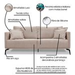 O Sofá 3 Lugares Rafaela é uma mobília que combina elegância, conforto e durabilidade. Ele tem um design moderno e sofisticado, com pés em aço carbono, e revestimento em tecido Linho Rústico Areia, que harmonizam com qualquer ambiente. Ele é ideal para sala de estar, recepções ou qualquer outro espaço que você queira decorar com estilo e bom gosto. Ele tem uma estrutura em madeira de reflorestamento eucalipto, que garante a resistência e a sustentabilidade do produto. Com medidas de 220 cm ele suporta até 180 kg de peso, podendo ser utilizado por pessoas de diferentes biotipos. Ele tem um acabamento reforçado com espuma de qualidade no encosto D23 e plumante em silicone, que oferece maciez e aconchego. Acompanha Almofadas soltas em fibra de silicone. Ele tem assento Fixo com inúmeras elásticas italiana, molas bonnel e espuma HR 28 e plumante em silicone, que proporcionam flexibilidade e conforto. Tem pés em aço carbono, alt.18 cm, cor preto, que protegem o produto contra corrosão e desgaste. O sofá Rafaela é um produto de alta qualidade, beleza e funcionalidade. Ele é fácil de transportar, pois tem um peso leve e um tamanho compacto. O sofá Rafaela é um produto que vai fazer a diferença na sua decoração e no seu bem-estar. Ela vai trazer charme, conforto e durabilidade para o seu ambiente. Aproveite essa oferta e leve para casa um sofá de qualidade por um preço incrível. Essa é a sua chance de ter um sofá maravilhoso por um preço imperdível. Corra e garanta o seu antes que acabe o estoque. Dimensões do Sofá: Altura total: 92 cm Largura total: 220 cm Profundidade total: 92 cm Peso: 52 kg Altura do Braço: 71 cm Altura do chão ao Assento: 46 cm Altura do Encosto: 46 cm Profundidade do Assento: 54 cm Largura do Braço: 8 cm Altura dos pés: 18 cm Especificações do Produto Estrutura: Madeira Eucalipto Reflorestada Densidade da Espuma: HR28 Tipo de Encosto: Almofadas soltas em fibra de silicone Almofada do Encosto: Removível Tipo de Acabamento: Costura Italiana Tipo de Assento: Fixo com percintas elásticas italiana, molas bonel e espuma HR28 + plumante em silicone Quantidade de Lugares: 3 Lugares Tecido: Linho Diferenciais: Acompanha 2 almofadas decorativas por braço Tipo de pés: Aço carbono, alt.18 cm, cor preto Peso suportado: Até 180 Kg Garantia: 90 dias contra defeito de fabricação Montagem: O produto é enviado montado, sendo necessário somente fixar os pés Instruções de limpeza: Utilizar um pano limpo e levemente úmido Você irá receber: 01 Sofá Entregue em: 01 Volume