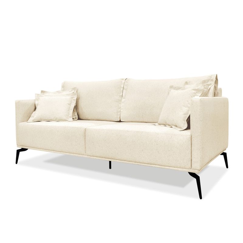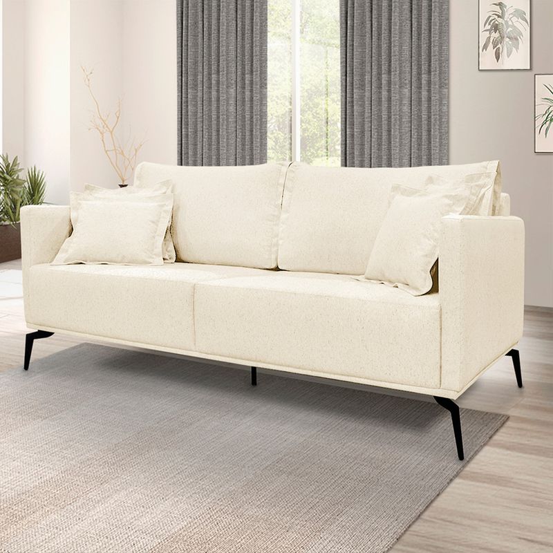 O Sofá 3 Lugares Rafaela é uma mobília que combina elegância, conforto e durabilidade. Ele tem um design moderno e sofisticado, com pés em aço carbono, e revestimento em tecido Linho Pérola, que harmonizam com qualquer ambiente. Ele é ideal para sala de estar, recepções ou qualquer outro espaço que você queira decorar com estilo e bom gosto. Ele tem uma estrutura em madeira de reflorestamento eucalipto, que garante a resistência e a sustentabilidade do produto. Com medidas de 220 cm ele suporta até 180 kg de peso, podendo ser utilizado por pessoas de diferentes biotipos. Ele tem um acabamento reforçado com espuma de qualidade no encosto D23 e plumante em silicone, que oferece maciez e aconchego. Acompanha Almofadas soltas em fibra de silicone. Ele tem assento Fixo com inúmeras elásticas italiana, molas bonnel e espuma HR 28 e plumante em silicone, que proporcionam flexibilidade e conforto. Tem pés em aço carbono, alt.18 cm, cor preto, que protegem o produto contra corrosão e desgaste. O sofá Rafaela é um produto de alta qualidade, beleza e funcionalidade. Ele é fácil de transportar, pois tem um peso leve e um tamanho compacto. O sofá Rafaela é um produto que vai fazer a diferença na sua decoração e no seu bem-estar. Ela vai trazer charme, conforto e durabilidade para o seu ambiente. Aproveite essa oferta e leve para casa um sofá de qualidade por um preço incrível. Essa é a sua chance de ter um sofá maravilhoso por um preço imperdível. Corra e garanta o seu antes que acabe o estoque. Dimensões do Sofá: Altura total: 92 cm Largura total: 220 cm Profundidade total: 92 cm Peso: 52 kg Altura do Braço: 71 cm Altura do chão ao Assento: 46 cm Altura do Encosto: 46 cm Profundidade do Assento: 54 cm Largura do Braço: 8 cm Altura dos pés: 18 cm Especificações do Produto Estrutura: Madeira Eucalipto Reflorestada Densidade da Espuma: HR28 Tipo de Encosto: Almofadas soltas em fibra de silicone Almofada do Encosto: Removível Tipo de Acabamento: Costura Italiana Tipo de Assento: Fixo com percintas elásticas italiana, molas bonel e espuma HR28 + plumante em silicone Quantidade de Lugares: 3 Lugares Tecido: Linho Diferenciais: Acompanha 2 almofadas decorativas por braço Tipo de pés: Aço carbono, alt.18 cm, cor preto Peso suportado: Até 180 Kg Garantia: 90 dias contra defeito de fabricação Montagem: O produto é enviado montado, sendo necessário somente fixar os pés Instruções de limpeza: Utilizar um pano limpo e levemente úmido Você irá receber: 01 Sofá Entregue em: 01 Volume