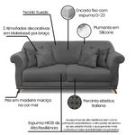 O Sofá 3 Lugares Julieta é uma mobília que combina elegância, conforto e durabilidade. Ele tem um design moderno e sofisticado, com pés em madeira maciça na cor mel e revestimento em tecido Suede Cinza, que harmonizam com qualquer ambiente. Ele é ideal para sala de estar, recepções ou qualquer outro espaço que você queira decorar com estilo e bom gosto. Ele tem uma estrutura em madeira de reflorestamento eucalipto, que garante a resistência e a sustentabilidade do produto. Com medidas de 220 cm ele suporta até 180 kg de peso, podendo ser utilizado por pessoas de diferentes biotipos. Ele tem um acabamento reforçado com espuma de qualidade no encosto D23 e plumante em silicone, que oferece maciez e aconchego. Acompanha 2 almofadas decorativas ( Enchimento fibra de silicone) bordadas em matelassê por braço. Ele tem assento Fixo com percintas elásticas italiana, espuma HR 28 e plumante em silicone, que proporcionam flexibilidade e conforto. Tem pés em madeira maciça com altura de 12 cm, que protegem o produto contra corrosão e desgaste. O sofá Julieta é um produto de alta qualidade, beleza e funcionalidade. Ele é fácil de transportar, pois tem um peso leve e um tamanho compacto. O sofá Julieta é um produto que vai fazer a diferença na sua decoração e no seu bem-estar. Ela vai trazer charme, conforto e durabilidade para o seu ambiente. Aproveite essa oferta e leve para casa um sofá de qualidade por um preço incrível. Essa é a sua chance de ter um sofá maravilhoso por um preço imperdível. Corra e garanta o seu antes que acabe o estoque! Dimensões do Sofá: Altura total: 90 cm Largura total: 220 cm Profundidade total: 82 cm Peso: 53 kg Altura do Braço: 74 cm Altura do chão ao Assento: 45 cm Altura do Encosto: 45 cm Profundidade do Assento: 55 cm Largura do Braço: 22 cm Altura dos pés: 12 cm Especificações do Produto Estrutura: Madeira de Eucalipto Reflorestada Espuma: D-23 Tipo de Encosto: Fixo com Plumante em Silicone Tipo de Assento: Fixo com Espuma HR 28, Percinta Elástica Italiana Quantidade de Lugares: 3 Lugares Tecido: Suede Diferenciais: Acompanha 02 Almofadas Decorativas em Matelassê por Braço Tipo de pés: Pés Madeira Maciça na cor Mel Peso suportado: Até 180 Kg Garantia: 90 dias contra defeito de fabricação Montagem: O produto é enviado montado, sendo necessário somente parafusar os pés Instruções de limpeza: Utilizar um pano limpo e levemente úmido Você irá receber: 01 Sofá Entregue em: 01 Volume