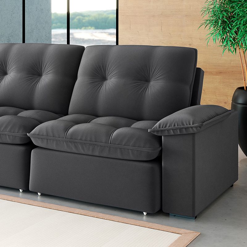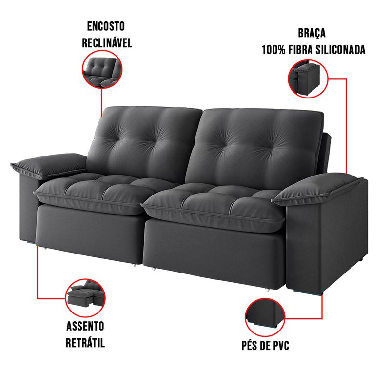 Que tal mudar o visual da sua sala adquirindo o Sofá Bolívia! Você sabia que para renovar o ambiente não precisa de grandes reformas? Você pode fazer isso de uma forma simples apenas trocando os móveis, portanto com o nosso maravilhoso sofá você consegue mudar completamente toda a aparência do seu ambiente. Suas medidas são de 270 cm, estrutura em madeira de reflorestamento tratada (eucalipto). Percintas elásticas no encosto, percintas elásticas com molas ensacadas no assento. Assento retrátil com espuma D-26 de alta densidade, permitindo uma melhor sustentação. Encosto 100% de fibra siliconada com espuma de excelente qualidade. Encosto reclinável com catraca de ativação em até 4 posições e pés de plástico rosqueável que traz muita segurança e conforto. Revestido com tecido veludo no tom grafite, possibilitando uma enorme suavidade ao toque. Aproveite essa oportunidade de deixar sua casa mais elegante e com economia. Escolha já o seu. Dimensões da Sofá: Altura total: 110 cm Largura total: 270 cm Profundidade total: 110 cm Profundidade total aberto: 160 cm Peso: 100 kg Especificações do Produto Estrutura: Madeira Eucalipto Reflorestada, MDF Espuma: D-26 Tecido: Veludo Diferenciais: Encosto Reclinável 04 Posições Tipo de pés: Pés de Plástico Peso suportado: Até 120 Kg Garantia: 90 dias contra defeito de fabricação Montagem: Produto vai montado, apenas rosquear os pés Instruções de limpeza: Utilizar um pano limpo e levemente úmido Você irá receber: 1 Sofá - Entregue em: 02 Volumes Observações Relevantes - Todos os produtos vão embalados com total segurança; - As cores dos produtos podem sofrer alterações dependendo do seu monitor; - Para futuras compras, não garantimos a mesma tonalidade de cor, pois existe variação a cada lote do fabricante do tecido; - As imagens são meramente ilustrativas, não acompanham objetos de decoração e eletros; - Confira as dimensões do produto no momento da compra e certifique-se de que passará normalmente por escadas, elevadores, portas e corredores; - Importante: Por se tratar de estofado as medidas podem ter uma pequena variação em até 3 cm; - Não nos responsabilizamos no ato da entrega por montagens, desmontagens, instalações de produtos; - Não nos responsabilizamos no ato da entrega por subir escadas, elevadores, nem utilização de guinchos ou equipamentos similares para acesso a pisos superiores em apartamentos; - A entrega do produto é realizada em todo território nacional, até onde as rodovias alcançam, entregas fluviais ou aéreas devem ser cotadas a parte; - Observando as orientações acima, evita-se futuros desagrados ou imprevistos com a entrega do produto. Havendo despesas adicionais, serão de responsabilidade do cliente;
