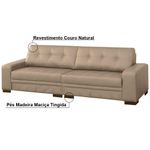 Sofá 4 Lugares 260cm Milano Couro Bege 66 Gran Belo Descrição do Produto:Sofá 4 Lugares 260cm Milano Couro Bege 66 Gran Belo está perfeito para completar a decoração do ambiente, este produto vai te dar um prazer imenso ao chegar em casa de um dia cansativo no trabalho, pois ao sentar ou se esparramar todo neste sofá você vai se sentir confortável, com certeza é isso que você procura. É ideal para acomodar a visita com aconchego e elegância, seu revestimento em couro garante total resistência e facilidade na hora da Limpeza. Dimensões do Produto:Largura: 260CmLargura do Assento: 105CmAltura: 90CmProfundidade: 95CmLargura do Braço: 25CmAltura do Encosto: 50CmAltura do Assento ao Chão: 40CmCaracterísticas do Produto:Material da Estrutura: Madeira Reflorestada de Eucalipto;Encosto: Percintas Elásticas, Espuma D-26 e Almofadas em Fibra Siliconada;Assento: Percintas Elásticas, Espuma D-26 e Molas no Assento;Material dos Pés: Madeira Maciça Tingida;Quantidade de Pés: 08;Tipo de Pés: Fixo;Revestimento: Couro;Peso Suportado: 100Kg Cada Assento;Conteúdo da Embalagem: 1 Sofá;Necessita de Montagem: Não;Instruções/Cuidado: Utilizar um pano levemente umedecido com água, seguido de pano seco. Evitar exposição ao sol, para que o produto não sofra alterações na cor. Não limpar com escovas ou produtos abrasivos.1