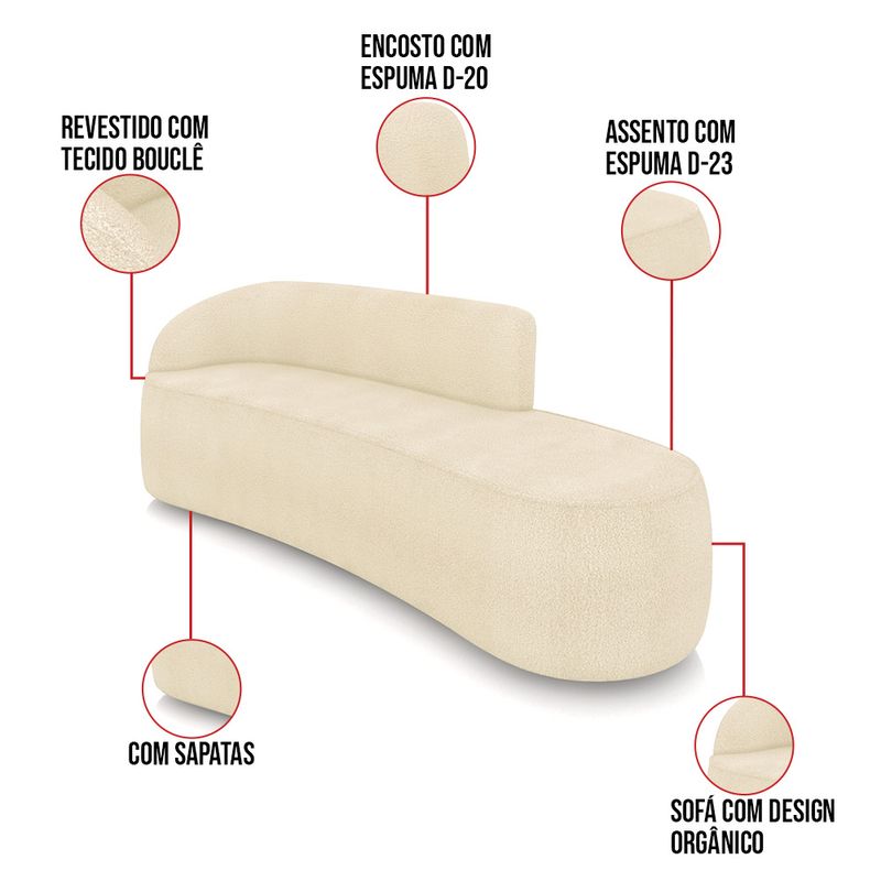 O Kit Sofá 4 Lugares Orgânico 220cm Morgan e 2 Poltronas Lua é um verdadeiro convite ao relaxamento! Ele possui um design orgânico que remete às formas encontradas na natureza que além de se moldar ao corpo humano, evoca uma sensação de calma e equilíbrio criando um espaço acolhedor e relaxante. O revestimento desse maravilhoso conjunto conta com um tecido extremamente elegante no Bouclê, suportando em média até 300 kg de peso, podendo ser utilizado por pessoas de diferentes biotipos. A Poltrona Lua contém uma simetria artística e curvas suaves, ela contém uma Base Giratória com giro em 360 graus e uma estrutura em madeira de reflorestamento eucalipto, que garante a resistência e a sustentabilidade do produto. Ela tem um acabamento reforçado e espuma de qualidade D23, que oferece maciez e conforto. Ela contém detalhes de costura no encosto e um assento cilíndrico arredondado resultando em um acabamento perfeito conferindo muito mais valor e personalizado ao produto, oferecendo maior liberdade de movimento ao cliente. O Sofá Morgan por sua vez é uma combinação perfeita de conforto e estilo. Com uma estrutura robusta de madeira de eucalipto e MDF, este sofá garante durabilidade e resistência. Os assentos e encostos são fixos, o encosto é preenchido com espuma D-20, proporcionando suporte ideal para suas costas, enquanto o assento com espuma D-23 oferece uma experiência de assento firme e aconchegante. Seu formato curvo e sem braços traz um toque de modernidade, permitindo que o sofá se encaixe harmoniosamente em diversos estilos de decoração, desde o minimalista até o mais ousado. As sapatas plásticas são pequenas proteções colocadas na base dos pés do sofá para evitar que eles risquem ou danifiquem o chão. Além de proteger o piso, essas sapatas ajudam a distribuir o peso do sofá de maneira mais uniforme. Esse lindo conjunto pode ser utilizado em salas de estar, recepções, escritórios, lojas, espaços comerciais, ou qualquer outro espaço que você queira decorar com estilo e bom gosto. O kit Sofá Morgan e 2 Poltronas Lua é um produto que vai fazer a diferença na sua decoração e no seu bem-estar. Ele vai trazer charme, conforto e durabilidade para o seu ambiente. Corra e garanta o seu agora mesmo! OBSERVAÇÃO IMPORTANTE: A entrega é realizada no endereço informado, não realizamos o transporte para andares superiores, como subir escadas, elevadores ou guinchos. Não realizamos montagens, desmontagens ou instalações. Todos esses serviços são de responsabilidade do comprador. Dimensões da Poltrona: Altura Total: 85 cm Largura Total: 91 cm Profundidade Total: 93 cm Altura do Encosto: 42 cm Largura do Assento: 62 cm Profundidade do Assento: 63 cm Altura do Assento: 40 cm Altura do chão ao Assento: 45 cm Largura do encosto: 87 cm Altura dos Pés: 5 cm Peso: 30 kg Dimensões do Sofá Altura Total: 80 cm Largura Total: 220 cm Profundidade Total: 70 cm Altura do Encosto: 40 cm Largura total livre do Assento: 220 cm Profundidade do Assento: 55 cm Altura dos Pés: 2 cm Altura do chão ao Assento: 45 cm Peso: 25 kg Especificações do Produto: Estrutura: Madeira Eucalipto Reflorestada e MDF Revestimento: Bouclê Material do Estofamento da Poltrona: D-23, Manta Acrílica e Percintas Elásticas Material do Estofamento do Sofá: Assento D-23; Encosto D-20 e Percintas Elásticas Quantidade de Lugares do Sofá : 4 Lugares Sofá Possui Braça: Não Peso Suportado: Até 300 kg Tipo de Pés: Poltrona com Base Giratória e Sapata Plástica PVC Material da Base da Poltrona: Aço Carbono Tipo de Encosto: Fixo Diferenciais: Design orgânico.Tecido de alta qualidade. Necessita de Montagem: Não Garantia: 90 dias contra defeito de fabricação Instruções de Limpeza: Utilizar um pano limpo e levemente úmido Você irá Receber: 02 Poltronas Giratória e 01 Sofá Orgânico - Entregue em: 02 Volumes