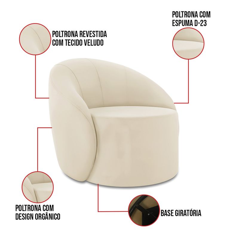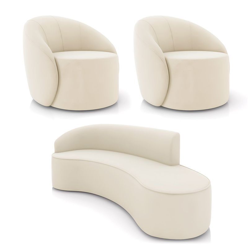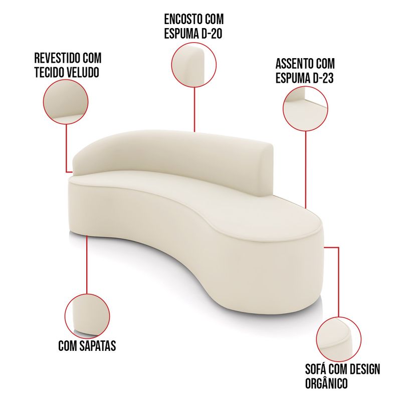 O Kit Sofá 2 Lugares Orgânico 220cm Morgan e 2 Poltronas Lua é um verdadeiro convite ao relaxamento! Ele possui um design orgânico que remete às formas encontradas na natureza que além de se moldar ao corpo humano, evoca uma sensação de calma e equilíbrio criando um espaço acolhedor e relaxante. O revestimento desse maravilhoso conjunto conta com um tecido extremamente elegante no Veludo Bege, suportando em média até 120 kg de peso, podendo ser utilizado por pessoas de diferentes biotipos. A Poltrona Lua contém uma simetria artística e curvas suaves, ela contém uma Base Giratória com giro em 360 graus e uma estrutura em madeira de reflorestamento eucalipto, que garante a resistência e a sustentabilidade do produto. Ela tem um acabamento reforçado e espuma de qualidade D23, que oferece maciez e conforto. Ela contém detalhes de costura no encosto e um assento cilíndrico arredondado resultando em um acabamento perfeito conferindo muito mais valor e personalizado ao produto, oferecendo maior liberdade de movimento ao cliente. O Sofá Morgan por sua vez é uma combinação perfeita de conforto e estilo. Com uma estrutura robusta de madeira de eucalipto e MDF, este sofá garante durabilidade e resistência. Os assentos e encostos são fixos, o encosto é preenchido com espuma D-20, proporcionando suporte ideal para suas costas, enquanto o assento com espuma D-23 oferece uma experiência de assento firme e aconchegante. Seu formato curvo e sem braços traz um toque de modernidade, permitindo que o sofá se encaixe harmoniosamente em diversos estilos de decoração, desde o minimalista até o mais ousado. As sapatas plásticas são pequenas proteções colocadas na base dos pés do sofá para evitar que eles risquem ou danifiquem o chão. Além de proteger o piso, essas sapatas ajudam a distribuir o peso do sofá de maneira mais uniforme. Esse lindo conjunto pode ser utilizado em salas de estar, recepções, escritórios, lojas, espaços comerciais, ou qualquer outro espaço que você queira decorar com estilo e bom gosto. O kit Sofá Morgan e 2 Poltronas Lua é um produto que vai fazer a diferença na sua decoração e no seu bem-estar. Ele vai trazer charme, conforto e durabilidade para o seu ambiente. Corra e garanta a sua agora mesmo! OBSERVAÇÃO IMPORTANTE: A entrega é realizada no endereço informado, não realizamos o transporte para andares superiores, como subir escadas, elevadores ou guinchos. Não realizamos montagens, desmontagens ou instalações. Todos esses serviços são de responsabilidade do comprador. Dimensões da Poltrona: Altura Total: 85 cm Largura Total: 91 cm Profundidade Total: 93 cm Altura do Encosto: 42 cm Largura do Assento: 62 cm Profundidade do Assento: 63 cm Altura do Assento: 40 cm Altura do chão ao Assento: 45 cm Largura do encosto: 87 cm Altura dos Pés: 5 cm Peso: 30 kg Dimensões do Sofá: Altura Total: 80 cm Largura Total: 220 cm Profundidade Total: 70 cm Altura do Encosto: 40 cm Largura total livre do Assento: 220 cm Profundidade do Assento: 55 cm Altura dos Pés: 2 cm Altura do chão ao Assento: 45 cm Peso: 25 kg Especificações do Produto: Estrutura: Madeira Eucalipto Reflorestada e MDF Revestimento: Veludo Material do Estofamento da Poltrona: D-23, Manta Acrílica e Percintas Elásticas Material do Estofamento do Sofá: Assento D-23; Encosto D-20 e Percintas Elásticas Quantidade de Lugares do Sofá : 2 Lugares Sofá Possui Braça: Não Peso Suportado: Até 120 Kg Tipo de Pés: Poltrona com Base Giratória e Sapata Plástica PVC Material da Base da Poltrona: Aço Carbono Tipo de Encosto: Fixo Diferenciais: Design orgânico.Tecido de alta qualidade. Necessita de Montagem: Não Garantia: 90 dias contra defeito de fabricação Instruções de Limpeza: Utilizar um pano limpo e levemente úmido Você irá Receber: 02 Poltrona Giratória e 01 Sofá Orgânico - Entregue em: 02 Volumes