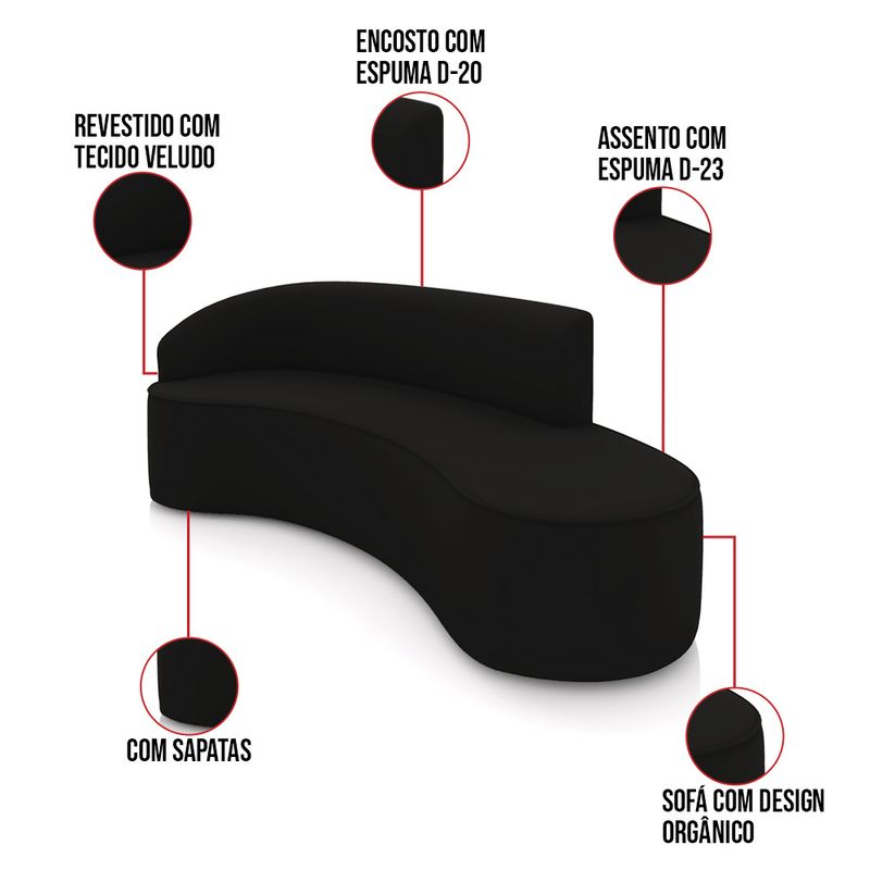 O Kit Sofá 2 Lugares Orgânico 220cm Morgan e 2 Poltronas Lua é um verdadeiro convite ao relaxamento! Ele possui um design orgânico que remete às formas encontradas na natureza que além de se moldar ao corpo humano, evoca uma sensação de calma e equilíbrio criando um espaço acolhedor e relaxante. O revestimento desse maravilhoso conjunto conta com um tecido extremamente elegante no Veludo Preto, suportando em média até 120 kg de peso, podendo ser utilizado por pessoas de diferentes biotipos. A Poltrona Lua contém uma simetria artística e curvas suaves, ela contém uma Base Giratória com giro em 360 graus e uma estrutura em madeira de reflorestamento eucalipto, que garante a resistência e a sustentabilidade do produto. Ela tem um acabamento reforçado e espuma de qualidade D23, que oferece maciez e conforto. Ela contém detalhes de costura no encosto e um assento cilíndrico arredondado resultando em um acabamento perfeito conferindo muito mais valor e personalizado ao produto, oferecendo maior liberdade de movimento ao cliente. O Sofá Morgan por sua vez é uma combinação perfeita de conforto e estilo. Com uma estrutura robusta de madeira de eucalipto e MDF, este sofá garante durabilidade e resistência. Os assentos e encostos são fixos, o encosto é preenchido com espuma D-20, proporcionando suporte ideal para suas costas, enquanto o assento com espuma D-23 oferece uma experiência de assento firme e aconchegante. Seu formato curvo e sem braços traz um toque de modernidade, permitindo que o sofá se encaixe harmoniosamente em diversos estilos de decoração, desde o minimalista até o mais ousado. As sapatas plásticas são pequenas proteções colocadas na base dos pés do sofá para evitar que eles risquem ou danifiquem o chão. Além de proteger o piso, essas sapatas ajudam a distribuir o peso do sofá de maneira mais uniforme. Esse lindo conjunto pode ser utilizado em salas de estar, recepções, escritórios, lojas, espaços comerciais, ou qualquer outro espaço que você queira decorar com estilo e bom gosto. O kit Sofá Morgan e 2 Poltronas Lua é um produto que vai fazer a diferença na sua decoração e no seu bem-estar. Ele vai trazer charme, conforto e durabilidade para o seu ambiente. Corra e garanta a sua agora mesmo! OBSERVAÇÃO IMPORTANTE: A entrega é realizada no endereço informado, não realizamos o transporte para andares superiores, como subir escadas, elevadores ou guinchos. Não realizamos montagens, desmontagens ou instalações. Todos esses serviços são de responsabilidade do comprador. Dimensões da Poltrona: Altura Total: 85 cm Largura Total: 91 cm Profundidade Total: 93 cm Altura do Encosto: 42 cm Largura do Assento: 62 cm Profundidade do Assento: 63 cm Altura do Assento: 40 cm Altura do chão ao Assento: 45 cm Largura do encosto: 87 cm Altura dos Pés: 5 cm Peso: 30 kg Dimensões do Sofá: Altura Total: 80 cm Largura Total: 220 cm Profundidade Total: 70 cm Altura do Encosto: 40 cm Largura total livre do Assento: 220 cm Profundidade do Assento: 55 cm Altura dos Pés: 2 cm Altura do chão ao Assento: 45 cm Peso: 25 kg Especificações do Produto: Estrutura: Madeira Eucalipto Reflorestada e MDF Revestimento: Veludo Material do Estofamento da Poltrona: D-23, Manta Acrílica e Percintas Elásticas Material do Estofamento do Sofá: Assento D-23; Encosto D-20 e Percintas Elásticas Quantidade de Lugares do Sofá : 2 Lugares Sofá Possui Braça: Não Peso Suportado: Até 120 Kg Tipo de Pés: Poltrona com Base Giratória e Sapata Plástica PVC Material da Base da Poltrona: Aço Carbono Tipo de Encosto: Fixo Diferenciais: Design orgânico.Tecido de alta qualidade. Necessita de Montagem: Não Garantia: 90 dias contra defeito de fabricação Instruções de Limpeza: Utilizar um pano limpo e levemente úmido Você irá Receber: 02 poltronas Giratória e 01 Sofá Orgânico - Entregue em: 02 Volumes