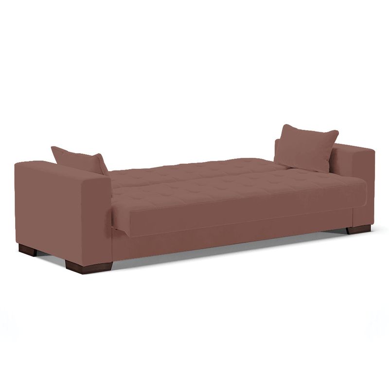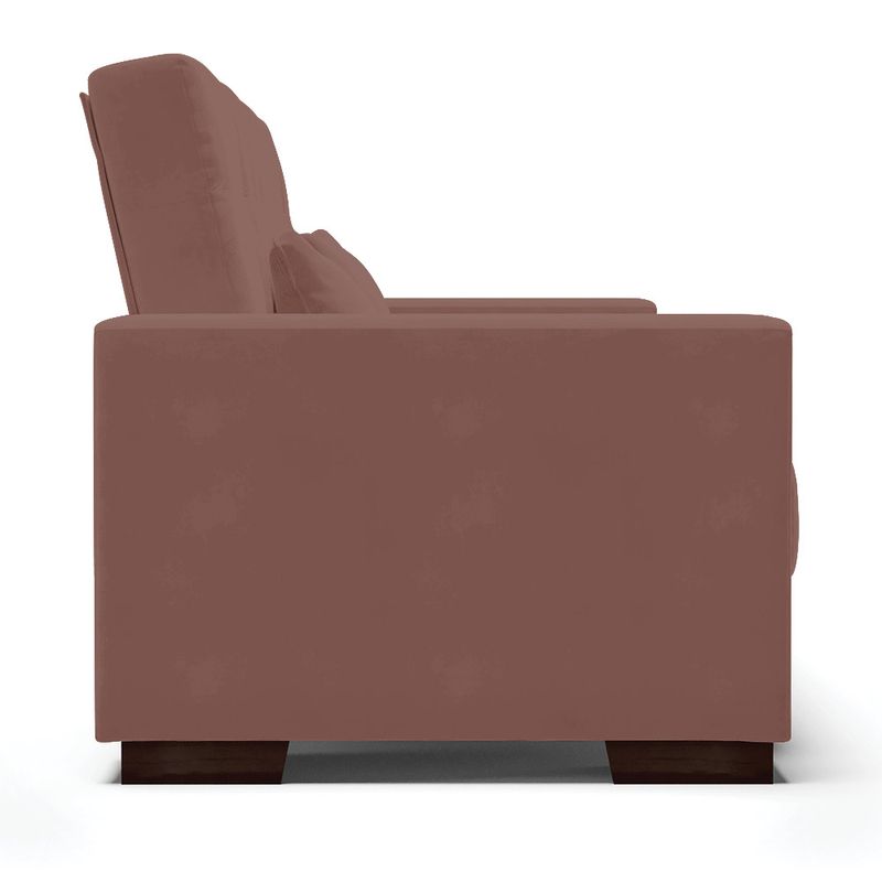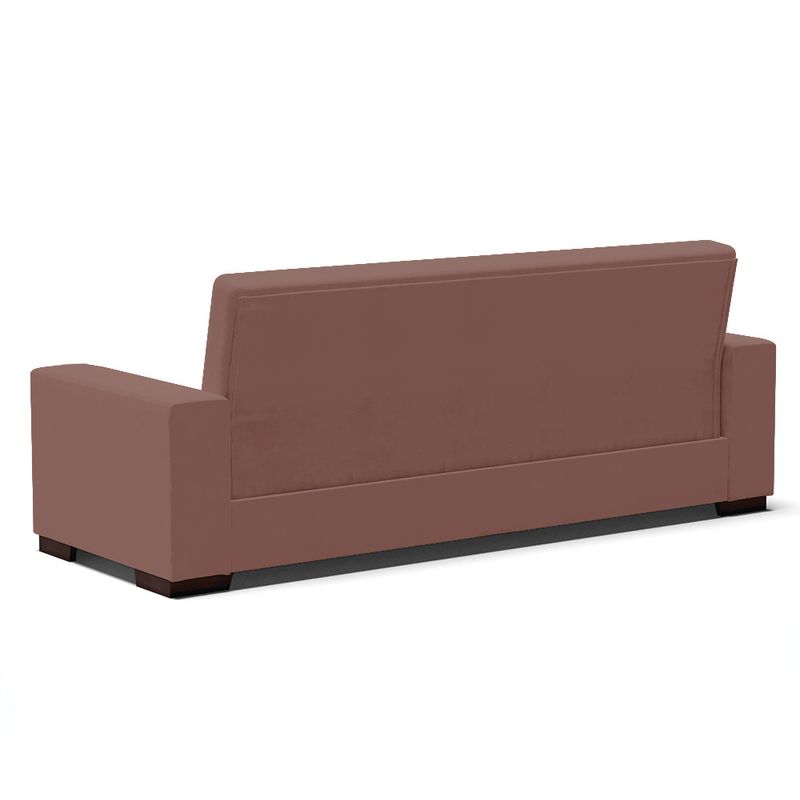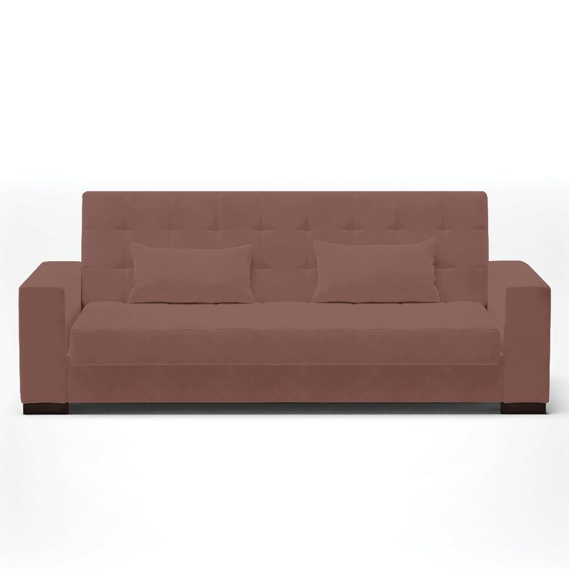 Na hora de escolher o modelo de sofá ideal para sua casa é preciso ter um cuidado especial, afinal de contas é uma peça de grande destaque na decoração. O nosso lindo Sofá Cama Casal 3 Lugares Lisboa, sem dúvidas é uma boa opção. Com um estilo mais retrô, remete a boas lembranças e recordações da infância, como por exemplo, a casa da vó, brincadeiras e momentos em família não é mesmo? E se você quer ter essas boas sensações, essa é a escolha certa. Produzido em Madeira de Eucalipto e tem sua estrutura sustentada por parafusos zincados e grampos galvanizados, o estofamento é feito com espuma D-23, com tecido Veludo na cor Rosê seu assento é composto com percintas elásticas o que garante maior durabilidade e conforto. Além de garantir a criação de um espaço confortável, o sofá Lisboa irá adicionar um toque luxuoso e aconchegante ao seu ambiente. Marcante por si só né! Escolha o seu. Dimensões Sofá Altura total: 80 cm Largura total: 210 cm Profundidade total: 121 cm Peso: 52 kg Especificações do Produto: Estrutura: Madeira Eucalipto Espuma: D-23 Tecido: Veludo Tipo de pés: Polipropileno de Alta Resistência Peso suportado: Até 180 Kg Diferenciais: 2 Posições, Assento Retrátil Garantia: 90 dias contra defeito de fabricação Montagem: O produto vai montado, apenas parafusar os pés Instruções de limpeza: Utilizar um pano limpo e levemente úmido Você irá receber: 01 Volume com 01 Sofá Observações Relevantes - Todos os produtos vão embalados com total segurança; - As cores dos produtos podem sofrer alterações dependendo do seu monitor; - Para futuras compras, não garantimos a mesma tonalidade de cor, pois existe variação a cada lote do fabricante do tecido; - As imagens são meramente ilustrativas, não acompanham objetos de decoração e eletros; - Confira as dimensões do produto no momento da compra e certifique-se de que passará normalmente por escadas, elevadores, portas e corredores; - Importante: Por se tratar de estofado as medidas podem ter uma pequena variação em até 3 cm; - Não nos responsabilizamos no ato da entrega por montagens, desmontagens, instalações de produtos; - Não nos responsabilizamos no ato da entrega por subir escadas, elevadores, nem utilização de guinchos ou equipamentos similares para acesso a pisos superiores em apartamentos; - A entrega do produto é realizada em todo território nacional, até onde as rodovias alcançam, entregas fluviais ou aéreas devem ser cotadas a parte; - Observando as orientações acima, evita-se futuros desagrados ou imprevistos com a entrega do produto. Havendo despesas adicionais, serão de responsabilidade do cliente;