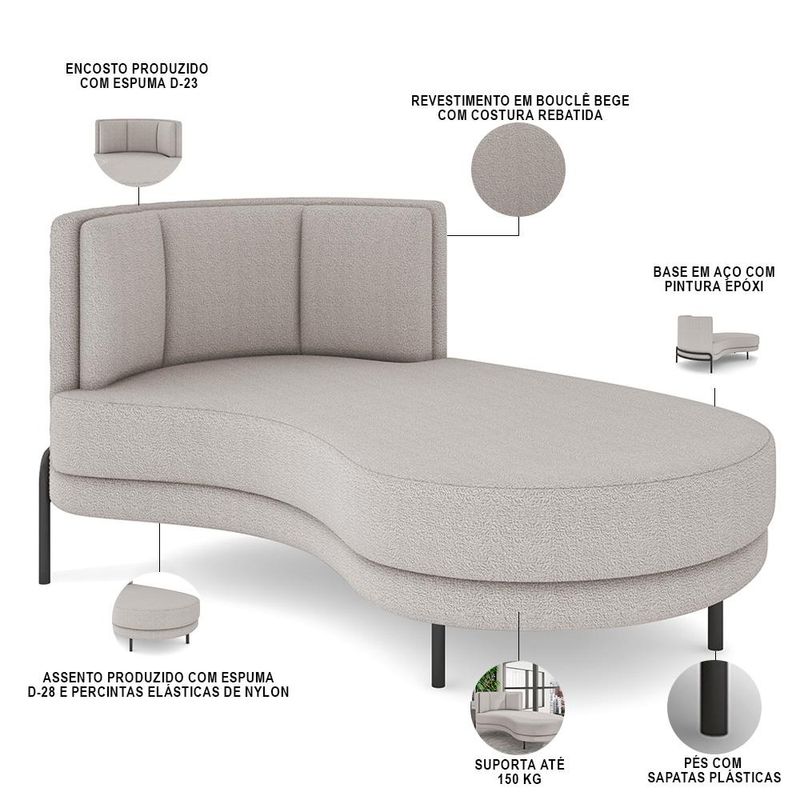 Hora de dar o protagonismo que a sua casa precisa, com uma peça unicamente equilibrada entre conforto e presença na decoração! Seja na Sala de Estar, Living, Quarto, ou em espaços corporativos como clínicas e escritórios, ela nunca passa despercebida. Entrega muito mais do que um excelente conforto, seu formato com suaves curvas remete ao estilo orgânico, que juntamente com sua estrutura em aço irá valorizar muito mais o ambiente. Dimensões do produto (L x A x P) 163 cm x 62 cm x 100 cm Medidas internas: Altura do assento: 44 cm Largura livre de assento: 144 cm Altura do encosto: 40 cm Altura dos pés: 20 cm Peso aproximado: 35 kg Características: Estrutura fabricada com madeira de eucalipto tratado, MDF e OSB unidos com grampos galvanizados. Percinta elástica de nylon. Espuma certificada, encosto revestido com em D-23, assento D-28. Revestimento em Bouclê com costura rebatida. Suporta até 100 kg. - Por se tratar de estofado as medidas podem ter uma pequena variação de até 3 cm. - A tonalidade do produto real poderá ter ligeira variação devido o lote de tecidos. Observações importantes: - A montagem será de responsabilidade do comprador. - Responsabilizamo-nos pela entrega em todo território nacional, até onde as rodovias alcançam, entregas fluviais ou aéreas devem ser cotadas a parte. - As imagens são ilustrativas, não acompanham objetos de decoração e eletrônicos. - Não nos responsabilizamos, no ato da entrega, por subir escadas/elevadores ou transporte por guincho em apartamentos. - Eventuais despesas são de responsabilidade do comprador. - Confira as dimensões do produto e certifique-se de que passará normalmente por supostos elevadores, portas, escadas e/ou corredores de sua residência.