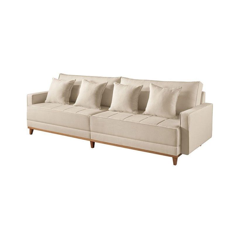 Sofá Fixo 6 Lugares M-199 2,60m Estofados Martins CremeSofa 6 Lugares Fixo Martins M-199 – Conforto, estilo e qualidade para sua sala O Sofa Martins M-199 Living e a escolha perfeita para quem busca sofisticacao, conforto e funcionalidade em um unico movel. Com design moderno e acabamento em linho, ele acomoda ate 6 pessoas com muito conforto. Sua estrutura robusta em madeira de eucalipto tratada e pes em madeira macica garantem durabilidade e estabilidade. Ideal para salas de estar amplas, o modelo e inteirico, possui assento fixo com molas Bonnel e encosto com almofadas soltas em fibra siliconada, proporcionando uma experiencia de conforto superior.Caracteristicas: Altura: 95 cm Largura: 260 cm Profundidade: 86 cm Peso 53,05 kg Modelo inteirico estrutura unica e robusta 6 pes em madeira macica Pinus/Sinamomo Assento fixo com espuma D-28 Soft, molas Bonnel e percintas elasticas Encosto fixo com almofadas soltas em fibra siliconada Detalhes em debrum no assento e encosto Bracos com espuma D-28 firme Revestimento em linho de alta qualidade Estrutura em madeira de eucalipto tratada, aparelhada Conteudo da embalagem: 1 Sofa Martins M-199 (inteirico) Almofadas decorativas 1 Manual de instrucoes Dimensoes do produto montado Altura: 95 cm Largura: 260 cm Profundidade: 86 cm Garantia do fabricante: 3 meses contra de fabricacao Observacoes: Requer montagem simples (manual incluso) Evite exposicao direta ao sol, calor ou umidade Limpeza com pano seco ou levemente umedecido As tonalidades podem variar conforme o monitor