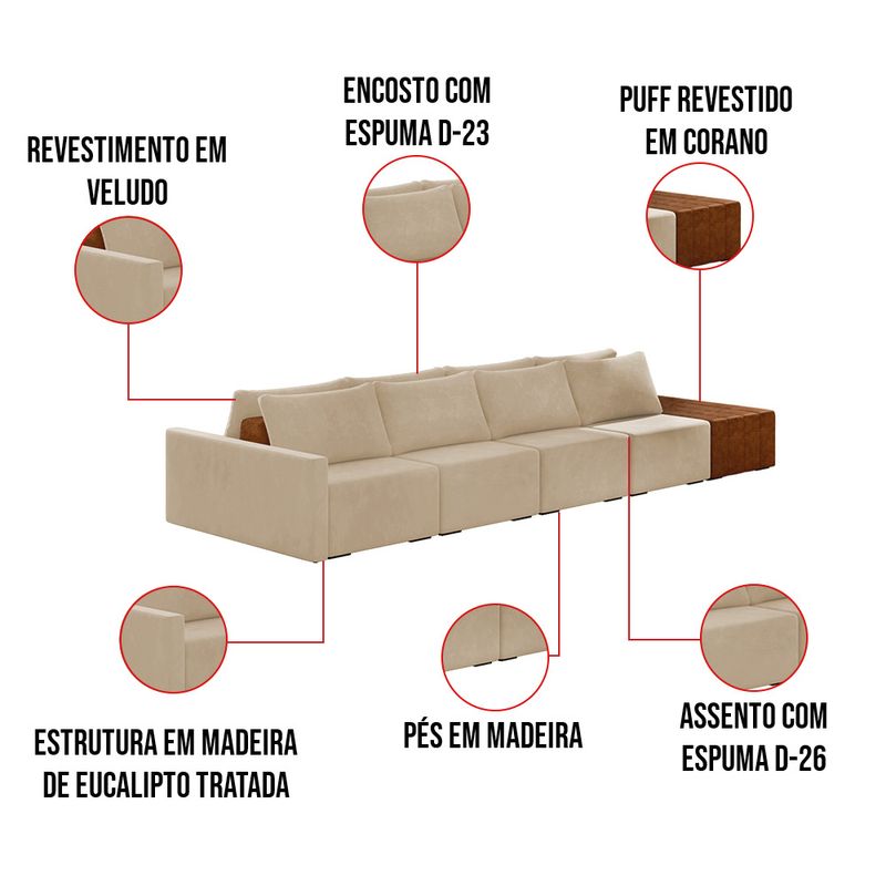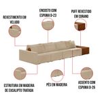 O Sofá Ilha 4 Lugares Living Lary de 512 cm é uma peça de destaque para qualquer ambiente, com um design moderno este sofá apresenta uma estrutura modular permitindo reorganizá-la criando um layout personalizado. Revestido no luxuoso tecido Veludo, proporcionando uma sensação de aconchego e sofisticação. Seu assento é fixo em espuma D-26 com multimolas de sustentação espiral e ensacadas, solda dupla, manta acrílica e percintas elásticas, suportando até 150 kg por assento. Já o encosto possui espuma D-23 sendo ele removível, com almofadas soltas preenchidas com 100% de fibra siliconada, proporcionando um apoio macio para as costas. Os pés são feitos em madeira certificando maior estabilidade ao móvel. Este sofá apresenta características de alta qualidade, incluindo uma estrutura de madeira tratada de eucalipto reflorestada, garantindo maior resistência e durabilidade ao produto, além de contribuir para a sustentabilidade ambiental. Com nove assentos no total, um deles revestido em tecido Sintético Pu Nozes com detalhes em gomos feito com a técnica de costura pespontos, este sofá oferece espaço suficiente para acomodar confortavelmente até dez pessoas, tornando-o ideal para receber amigos e familiares com estilo e conforto. Pode ser utilizado em escritórios, restaurantes e demais ambientes corporativos.O Sofá Lary é a escolha perfeita para quem busca uma peça de mobiliário que une funcionalidade, conforto e estilo em uma única solução para o seu ambiente. Aproveite! Dimensões do Produto: Altura Total: 82 cm Largura Total: 512 cm Profundidade Total: 160 cm Peso: 216 kg Largura do Braço: 12 cm Largura do Assento: 110 cm Profundidade do Assento: Variável. Altera de acordo com a posição do encosto Outras Medidas: 1x Módulo Lateral com Braço: 122 x 82 x 160 cm 2x Módulo Central: 110 x 82 x 160 cm Largura do Puff: 60 x 45 x 160 cm Altura do chão ao Assento: 45 cm Altura do Encosto: 37 cm Especificações do Produto: Estrutura: Madeira de Reflorestamento Tratada (Eucalipto) Espuma do Encosto: D-23, ajustável Espuma do Assento: D-26 Molas Ensacadas e Espirais com Percintas/Manta Acrílica Revestimento: Veludo Possui Pés: Sim Tipo de Pés: Madeira Detalhes/Aplicações: Acompanha Almofadas Soltas 100% Fibras Siliconadas - Manta Acrílica Peso Suportado: Até 150 Kg por assento Quantidade de Assentos: 9 Assentos Quantidade de Lugares: Até 10 Lugares Tipo de Encosto: Móvel Tipo de Assento: Fixo É retrátil: Não É reclinável: Não Complexidade da Montagem: Baixo Diferenciais: Sofá modular, estilo ilha, pode ser aproveitado assentos em ambos os lados. Acompanha almofadas. Ideal para sala de estar, living e ambientes integrados Montagem: O produto é enviado montado, sendo necessário apenas a junção dos módulos. Garantia: 90 dias contra defeito de fabricação Instruções de Limpeza: Utilizar um pano limpo e levemente úmido Você irá Receber: 01 Sofá Entregue em: 05 Volumes