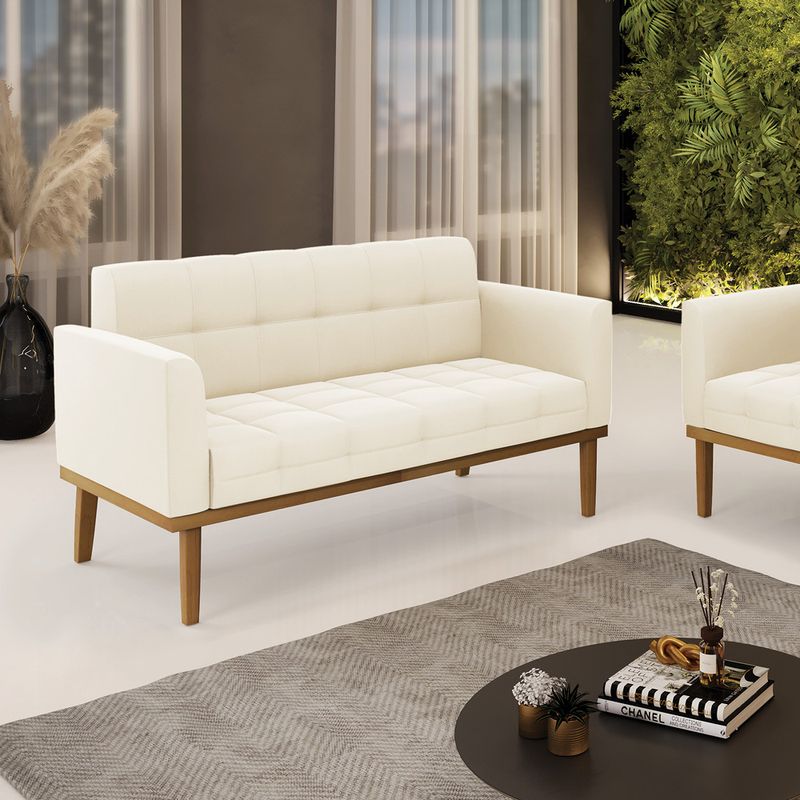 Você gosta de colecionar vários momentos memoráveis com sua família e amigos? Que tal recebê-los, com móveis de altíssima qualidade que só a D'Rossi tem? O Sofá Namoradeira Elisa é adequado para você! Seu design retrô é a grande tendência do momento. Pode ser utilizado em diversos espaços da casa, em salas, hall de entrada, quartos, cozinhas, varanda, sacada, escritório, dentre outros. Contém as seguintes características: A estrutura é feita de madeira de Eucalipto 100% de reflorestamento, e a Base de Madeira Castanho, além de ser resistente e durável, suporta em média até 120 kg. Assento, encosto e braços, contém enchimento de espuma D-23 e é estofada em tecido Veludo, que oferece muito conforto e resistência ao sentar, com aquela sensação de maciez e aconchego. Possui também, detalhes de costura no encosto e assento, resultando em um acabamento impecável, conferindo muito mais valor e elegância ao seu espaço. Para complementar a decoração com esse lindo Sofá Namoradeira, a dica é utilizar mantas, almofadas ou vasinho de flor. E pronto, seu cantinho estará perfeito para descansar e relaxar! Aqui, você encontra várias opções, para que seus amigos e familiares se sintam acolhidos. Garanta já seu Sofá Namoradeira. Dimensões da Sofá Namoradeira: Altura total: 81 cm Largura total: 114 cm Profundidade total: 64 cm Altura do encosto: 36 cm Largura do assento: 96 cm Profundidade do assento: 48 cm Altura do chão ao assento: 45 cm Espessura do assento: 18 cm Tamanho dos pés: 30 cm Espessura do braço: 9 cm Peso: 24 kg Especificações do Produto Estrutura: Madeira Eucalipto Espuma: D-23 Tecido: Veludo Tipo de pés: Base de Madeira Fixa Castanho Peso suportado: Até 120 Kg Garantia: 90 dias contra defeito de fabricação Montagem: O produto vai montado, apenas parafusar a base Instruções de limpeza: Utilizar um pano limpo e levemente úmido Você irá receber: 01 Sofá Namoradeira - Entregue em: 01 Volume Observações Relevantes - Todos os produtos vão embalados com total segurança; - As cores dos produtos podem sofrer alterações dependendo do seu monitor; - Para futuras compras, não garantimos a mesma tonalidade de cor, pois existe variação a cada lote do fabricante do tecido; - As imagens são meramente ilustrativas, não acompanham objetos de decoração e eletros; - Confira as dimensões do produto no momento da compra e certifique-se de que passará normalmente por escadas, elevadores, portas e corredores; - Importante: Por se tratar de estofado as medidas podem ter uma pequena variação em até 3 cm; - Não nos responsabilizamos no ato da entrega por montagens, desmontagens, instalações de produtos; - Não nos responsabilizamos no ato da entrega por subir escadas, elevadores, nem utilização de guinchos ou equipamentos similares para acesso a pisos superiores em apartamentos; - A entrega do produto é realizada em todo território nacional, até onde as rodovias alcançam, entregas fluviais ou aéreas devem ser cotadas a parte; - Observando as orientações acima, evita-se futuros desagrados ou imprevistos com a entrega do produto. Havendo despesas adicionais, serão de responsabilidade do cliente;