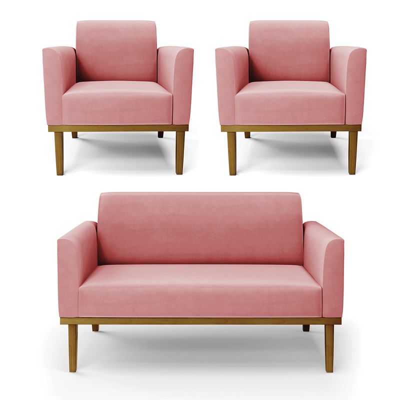 Todo mundo gosta de um ambiente bem decorado, e se for novidade melhor ainda não é mesmo? A D'Rossi, além de entregar beleza, qualidade e confiança aos clientes, ela dispõe das melhores opções em produtos, disponíveis no mercado! Se você quer um produto sofisticado, opte pelo Sofá Namoradeira com Poltrona Marisa. Este kit dispõe de um tom lindo no Rosê, uma cor leve, neutra e delicada que combina com qualquer estilo de decoração. Ele fica perfeito na sala, escritório, quarto, varanda coberta e onde mais preferir! Sua estrutura é feita em madeira reforçada de eucalipto proveniente de reflorestamento. No assento/encosto contém um revestimento no tecido Suede, com estofamento em espuma prorelax D-23, garantindo maior conforto ao usuário. A sustentação da peça é dada pela Base de Madeira Fixa Castanho, garantindo uma resistência melhor, para relaxar o dia todo com mais comodidade. O Sofá Namoradeira com Poltrona Marisa é ideal, para dar aquele realce que seu ambiente precisa. Tenho certeza que, esse móvel é a melhor compra que você irá fazer. Garanta já seu Kit e se acomode da melhor maneira possível! Dimensões da Sofá Namoradeira: Altura total: 81 cm Largura total: 114 cm Profundidade total: 64 cm Altura do encosto: 36 cm Largura do assento: 96 cm Profundidade do assento: 48 cm Altura do chão ao assento: 45 cm Espessura do assento: 18 cm Tamanho dos pés: 30 cm Espessura do braço: 9 cm Peso: 24 kg Dimensões da Poltrona: Altura total: 81 cm Largura total: 64 cm Profundidade total: 64 cm Altura do encosto: 36 cm Largura do assento: 47 cm Profundidade do assento: 48 cm Altura do chão ao assento: 45 cm Espessura do assento: 18 cm Tamanho dos pés: 30 cm Espessura do braço: 9 cm Peso: 18 kg Especificações do Produto Estrutura: Madeira Eucalipto Espuma: D-23 Tecido: Suede Tipo de pés: Base de Madeira Fixa Castanho Peso suportado: Até 120 Kg Garantia: 90 dias contra defeito de fabricação Montagem: O produto vai montado, apenas parafusar a base Instruções de limpeza: Utilizar um pano limpo e levemente úmido Você irá receber: 01 Sofá Namoradeira e 02 Poltronas - Entregue em: 03 Volumes Observações Relevantes - Todos os produtos vão embalados com total segurança; - As cores dos produtos podem sofrer alterações dependendo do seu monitor; - Para futuras compras, não garantimos a mesma tonalidade de cor, pois existe variação a cada lote do fabricante do tecido; - As imagens são meramente ilustrativas, não acompanham objetos de decoração e eletros; - Confira as dimensões do produto no momento da compra e certifique-se de que passará normalmente por escadas, elevadores, portas e corredores; - Importante: Por se tratar de estofado as medidas podem ter uma pequena variação em até 3 cm; - Não nos responsabilizamos no ato da entrega por montagens, desmontagens, instalações de produtos; - Não nos responsabilizamos no ato da entrega por subir escadas, elevadores, nem utilização de guinchos ou equipamentos similares para acesso a pisos superiores em apartamentos; - A entrega do produto é realizada em todo território nacional, até onde as rodovias alcançam, entregas fluviais ou aéreas devem ser cotadas a parte; - Observando as orientações acima, evita-se futuros desagrados ou imprevistos com a entrega do produto. Havendo despesas adicionais, serão de responsabilidade do cliente;