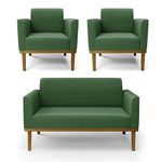 Todo mundo gosta de um ambiente bem decorado, e se for novidade melhor ainda não é mesmo? A D'Rossi, além de entregar beleza, qualidade e confiança aos clientes, ela dispõe das melhores opções em produtos, disponíveis no mercado! Se você quer um produto sofisticado, opte pelo Sofá Namoradeira com Poltrona Marisa. Este kit dispõe de um tom lindo no Verde, uma cor leve, neutra e delicada que combina com qualquer estilo de decoração. Ele fica perfeito na sala, escritório, quarto, varanda coberta e onde mais preferir! Sua estrutura é feita em madeira reforçada de eucalipto proveniente de reflorestamento. No assento/encosto contém um revestimento no tecido Suede, com estofamento em espuma prorelax D-23, garantindo maior conforto ao usuário. A sustentação da peça é dada pela Base de Madeira Fixa Castanho, garantindo uma resistência melhor, para relaxar o dia todo com mais comodidade. O Sofá Namoradeira com Poltrona Marisa é ideal, para dar aquele realce que seu ambiente precisa. Tenho certeza que, esse móvel é a melhor compra que você irá fazer. Garanta já seu Kit e se acomode da melhor maneira possível! Dimensões da Sofá Namoradeira: Altura total: 81 cm Largura total: 114 cm Profundidade total: 64 cm Altura do encosto: 36 cm Largura do assento: 96 cm Profundidade do assento: 48 cm Altura do chão ao assento: 45 cm Espessura do assento: 18 cm Tamanho dos pés: 30 cm Espessura do braço: 9 cm Peso: 24 kg Dimensões da Poltrona: Altura total: 81 cm Largura total: 64 cm Profundidade total: 64 cm Altura do encosto: 36 cm Largura do assento: 47 cm Profundidade do assento: 48 cm Altura do chão ao assento: 45 cm Espessura do assento: 18 cm Tamanho dos pés: 30 cm Espessura do braço: 9 cm Peso: 18 kg Especificações do Produto Estrutura: Madeira Eucalipto Espuma: D-23 Tecido: Suede Tipo de pés: Base de Madeira Fixa Castanho Peso suportado: Até 120 Kg Garantia: 90 dias contra defeito de fabricação Montagem: O produto vai montado, apenas parafusar a base Instruções de limpeza: Utilizar um pano limpo e levemente úmido Você irá receber: 01 Sofá Namoradeira e 02 Poltronas - Entregue em: 03 Volumes Observações Relevantes - Todos os produtos vão embalados com total segurança; - As cores dos produtos podem sofrer alterações dependendo do seu monitor; - Para futuras compras, não garantimos a mesma tonalidade de cor, pois existe variação a cada lote do fabricante do tecido; - As imagens são meramente ilustrativas, não acompanham objetos de decoração e eletros; - Confira as dimensões do produto no momento da compra e certifique-se de que passará normalmente por escadas, elevadores, portas e corredores; - Importante: Por se tratar de estofado as medidas podem ter uma pequena variação em até 3 cm; - Não nos responsabilizamos no ato da entrega por montagens, desmontagens, instalações de produtos; - Não nos responsabilizamos no ato da entrega por subir escadas, elevadores, nem utilização de guinchos ou equipamentos similares para acesso a pisos superiores em apartamentos; - A entrega do produto é realizada em todo território nacional, até onde as rodovias alcançam, entregas fluviais ou aéreas devem ser cotadas a parte; - Observando as orientações acima, evita-se futuros desagrados ou imprevistos com a entrega do produto. Havendo despesas adicionais, serão de responsabilidade do cliente;