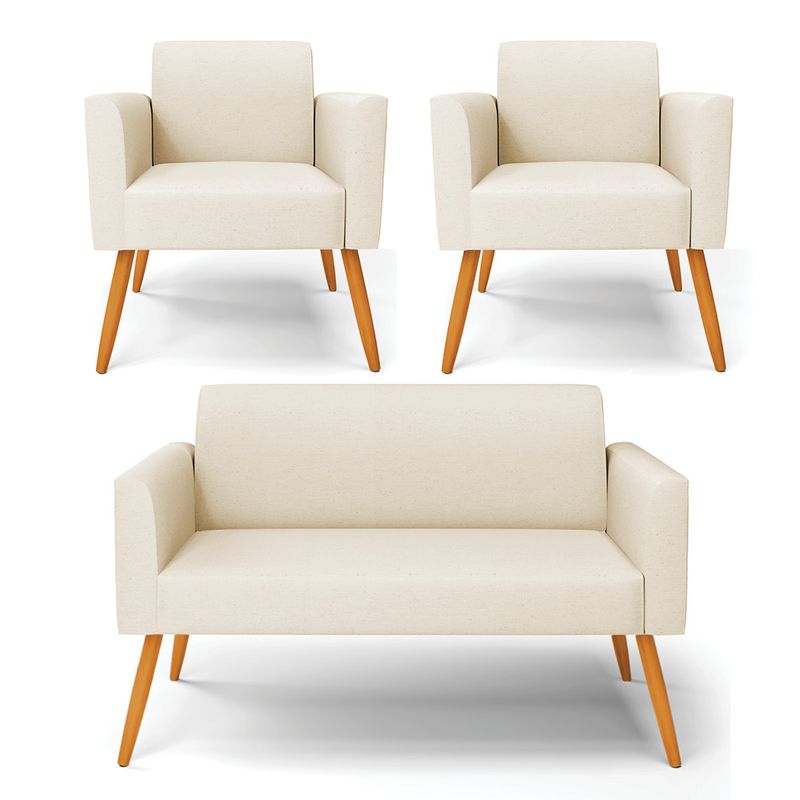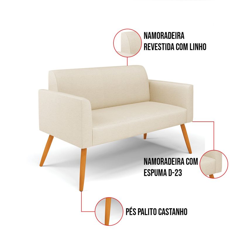 Todo mundo gosta de um ambiente bem decorado, e se for novidade melhor ainda não é mesmo? A D'Rossi, além de entregar beleza, qualidade e confiança aos clientes, ela dispõe das melhores opções em produtos, disponíveis no mercado! Se você quer um produto sofisticado, opte pelo Sofá Namoradeira com 2 Poltronas Marisa. Este kit dispõe de um tom lindo no Bege, uma cor leve, neutra e delicada que combina com qualquer estilo de decoração. Ele fica perfeito na sala, escritório, quarto, varanda coberta e onde mais preferir! Sua estrutura é feita em madeira reforçada de eucalipto proveniente de reflorestamento. No assento/encosto contém um revestimento no tecido Linho, com estofamento em espuma prorelax D-23, garantindo maior conforto ao usuário. A sustentação da peça é dada pelos Pés Palito Castanho, garantindo uma resistência melhor, para relaxar o dia todo com mais comodidade. O Sofá Namoradeira com 2 Poltronas Marisa é ideal, para dar aquele realce que seu ambiente precisa. Tenho certeza que, esse móvel é a melhor compra que você irá fazer. Garanta já seu Kit e se acomode da melhor maneira possível!Dimensões do Sofá Namoradeira: Altura total: 81 cm Largura total: 114 cm Profundidade total: 64 cm Altura do encosto: 36 cm Largura do assento: 96 cm Profundidade do assento: 48 cm Altura do chão ao assento: 45 cm Espessura do assento: 18 cm Tamanho dos pés: 30 cm Espessura do braço: 9 cm Peso: 20 kg Dimensões da Poltrona: Altura total: 81 cm Largura total: 64 cm Profundidade total: 64 cm Altura do encosto: 36 cm Largura do assento: 47 cm Profundidade do assento: 48 cm Altura do chão ao assento: 45 cm Espessura do assento: 18 cm Tamanho dos pés: 30 cm Espessura do braço: 9 cm Peso: 14 kg Especificações do Produto Estrutura: Madeira Eucalipto Espuma: D-23 Tecido: Linho Tipo de pés: Pés Palito Castanho Peso suportado: Até 120 Kg Garantia: 90 dias contra defeito de fabricação Montagem: O produto vai montado, apenas rosquear os pés Instruções de limpeza: Utilizar um pano limpo e levemente úmido Você irá receber: 01 Sofá Namoradeira e 02 Poltronas - Entregue em: 03 Volumes Observações Relevantes - Todos os produtos vão embalados com total segurança; - As cores dos produtos podem sofrer alterações dependendo do seu monitor; - Para futuras compras, não garantimos a mesma tonalidade de cor, pois existe variação a cada lote do fabricante do tecido; - As imagens são meramente ilustrativas, não acompanham objetos de decoração e eletros; - Confira as dimensões do produto no momento da compra e certifique-se de que passará normalmente por escadas, elevadores, portas e corredores; - Importante: Por se tratar de estofado as medidas podem ter uma pequena variação em até 3 cm; - Não nos responsabilizamos no ato da entrega por montagens, desmontagens, instalações de produtos; - Não nos responsabilizamos no ato da entrega por subir escadas, elevadores, nem utilização de guinchos ou equipamentos similares para acesso a pisos superiores em apartamentos; - A entrega do produto é realizada em todo território nacional, até onde as rodovias alcançam, entregas fluviais ou aéreas devem ser cotadas a parte; - Observando as orientações acima, evita-se futuros desagrados ou imprevistos com a entrega do produto. Havendo despesas adicionais, serão de responsabilidade do cliente;