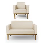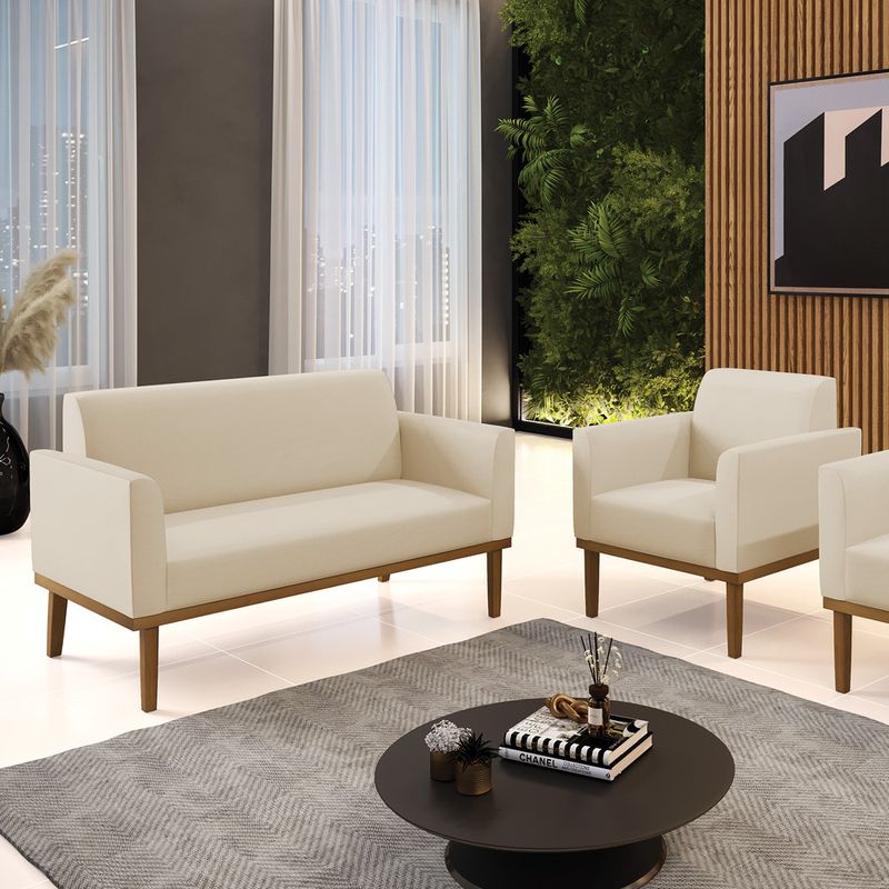 Todo mundo gosta de um ambiente bem decorado, e se for novidade melhor ainda não é mesmo? A D'Rossi, além de entregar beleza, qualidade e confiança aos clientes, ela dispõe das melhores opções em produtos, disponíveis no mercado! Se você quer um produto sofisticado, opte pelo Sofá Namoradeira com Poltrona Marisa. Este kit dispõe de um tom lindo no Bege, uma cor leve, neutra e delicada que combina com qualquer estilo de decoração. Ele fica perfeito na sala, escritório, quarto, varanda coberta e onde mais preferir! Sua estrutura é feita em madeira reforçada de eucalipto proveniente de reflorestamento. No assento/encosto contém um revestimento no tecido Corino, com estofamento em espuma prorelax D-23, garantindo maior conforto ao usuário. A sustentação da peça é dada pela Base de Madeira Fixa Castanho, garantindo uma resistência melhor, para relaxar o dia todo com mais comodidade. O Sofá Namoradeira com Poltrona Marisa é ideal, para dar aquele realce que seu ambiente precisa. Tenho certeza que, esse móvel é a melhor compra que você irá fazer. Garanta já seu Kit e se acomode da melhor maneira possível! Dimensões da Sofá Namoradeira: Altura total: 81 cm Largura total: 114 cm Profundidade total: 64 cm Altura do encosto: 36 cm Largura do assento: 96 cm Profundidade do assento: 48 cm Altura do chão ao assento: 45 cm Espessura do assento: 18 cm Tamanho dos pés: 30 cm Espessura do braço: 9 cm Peso: 24 kg Dimensões da Poltrona: Altura total: 81 cm Largura total: 64 cm Profundidade total: 64 cm Altura do encosto: 36 cm Largura do assento: 47 cm Profundidade do assento: 48 cm Altura do chão ao assento: 45 cm Espessura do assento: 18 cm Tamanho dos pés: 30 cm Espessura do braço: 9 cm Peso: 18 kg Especificações do Produto Estrutura: Madeira Eucalipto Espuma: D-23 Tecido: Corino Tipo de pés: Base de Madeira Fixa Castanho Peso suportado: Até 120 Kg Garantia: 90 dias contra defeito de fabricação Montagem: O produto vai montado, apenas parafusar a base Instruções de limpeza: Utilizar um pano limpo e levemente úmido Você irá receber: 01 Sofá Namoradeira e 01 Poltrona - Entregue em: 02 Volumes Observações Relevantes - Todos os produtos vão embalados com total segurança; - As cores dos produtos podem sofrer alterações dependendo do seu monitor; - Para futuras compras, não garantimos a mesma tonalidade de cor, pois existe variação a cada lote do fabricante do tecido; - As imagens são meramente ilustrativas, não acompanham objetos de decoração e eletros; - Confira as dimensões do produto no momento da compra e certifique-se de que passará normalmente por escadas, elevadores, portas e corredores; - Importante: Por se tratar de estofado as medidas podem ter uma pequena variação em até 3 cm; - Não nos responsabilizamos no ato da entrega por montagens, desmontagens, instalações de produtos; - Não nos responsabilizamos no ato da entrega por subir escadas, elevadores, nem utilização de guinchos ou equipamentos similares para acesso a pisos superiores em apartamentos; - A entrega do produto é realizada em todo território nacional, até onde as rodovias alcançam, entregas fluviais ou aéreas devem ser cotadas a parte; - Observando as orientações acima, evita-se futuros desagrados ou imprevistos com a entrega do produto. Havendo despesas adicionais, serão de responsabilidade do cliente;