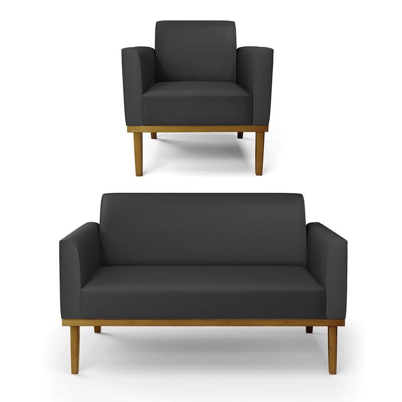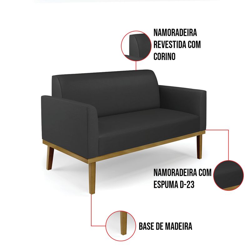 Todo mundo gosta de um ambiente bem decorado, e se for novidade melhor ainda não é mesmo? A D'Rossi, além de entregar beleza, qualidade e confiança aos clientes, ela dispõe das melhores opções em produtos, disponíveis no mercado! Se você quer um produto sofisticado, opte pelo Sofá Namoradeira com Poltrona Marisa. Este kit dispõe de um tom lindo no Preto, uma cor leve, neutra e delicada que combina com qualquer estilo de decoração. Ele fica perfeito na sala, escritório, quarto, varanda coberta e onde mais preferir! Sua estrutura é feita em madeira reforçada de eucalipto proveniente de reflorestamento. No assento/encosto contém um revestimento no tecido Corino, com estofamento em espuma prorelax D-23, garantindo maior conforto ao usuário. A sustentação da peça é dada pela Base de Madeira Fixa Castanho, garantindo uma resistência melhor, para relaxar o dia todo com mais comodidade. O Sofá Namoradeira com Poltrona Marisa é ideal, para dar aquele realce que seu ambiente precisa. Tenho certeza que, esse móvel é a melhor compra que você irá fazer. Garanta já seu Kit e se acomode da melhor maneira possível! Dimensões da Sofá Namoradeira: Altura total: 81 cm Largura total: 114 cm Profundidade total: 64 cm Altura do encosto: 36 cm Largura do assento: 96 cm Profundidade do assento: 48 cm Altura do chão ao assento: 45 cm Espessura do assento: 18 cm Tamanho dos pés: 30 cm Espessura do braço: 9 cm Peso: 24 kg Dimensões da Poltrona: Altura total: 81 cm Largura total: 64 cm Profundidade total: 64 cm Altura do encosto: 36 cm Largura do assento: 47 cm Profundidade do assento: 48 cm Altura do chão ao assento: 45 cm Espessura do assento: 18 cm Tamanho dos pés: 30 cm Espessura do braço: 9 cm Peso: 18 kg Especificações do Produto Estrutura: Madeira Eucalipto Espuma: D-23 Tecido: Corino Tipo de pés: Base de Madeira Fixa Castanho Peso suportado: Até 120 Kg Garantia: 90 dias contra defeito de fabricação Montagem: O produto vai montado, apenas parafusar a base Instruções de limpeza: Utilizar um pano limpo e levemente úmido Você irá receber: 01 Sofá Namoradeira e 01 Poltrona - Entregue em: 02 Volumes Observações Relevantes - Todos os produtos vão embalados com total segurança; - As cores dos produtos podem sofrer alterações dependendo do seu monitor; - Para futuras compras, não garantimos a mesma tonalidade de cor, pois existe variação a cada lote do fabricante do tecido; - As imagens são meramente ilustrativas, não acompanham objetos de decoração e eletros; - Confira as dimensões do produto no momento da compra e certifique-se de que passará normalmente por escadas, elevadores, portas e corredores; - Importante: Por se tratar de estofado as medidas podem ter uma pequena variação em até 3 cm; - Não nos responsabilizamos no ato da entrega por montagens, desmontagens, instalações de produtos; - Não nos responsabilizamos no ato da entrega por subir escadas, elevadores, nem utilização de guinchos ou equipamentos similares para acesso a pisos superiores em apartamentos; - A entrega do produto é realizada em todo território nacional, até onde as rodovias alcançam, entregas fluviais ou aéreas devem ser cotadas a parte; - Observando as orientações acima, evita-se futuros desagrados ou imprevistos com a entrega do produto. Havendo despesas adicionais, serão de responsabilidade do cliente;