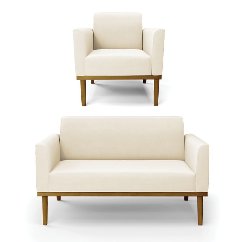 Todo mundo gosta de um ambiente bem decorado, e se for novidade melhor ainda não é mesmo? A D'Rossi, além de entregar beleza, qualidade e confiança aos clientes, ela dispõe das melhores opções em produtos, disponíveis no mercado! Se você quer um produto sofisticado, opte pelo Sofá Namoradeira com Poltrona Marisa. Este kit dispõe de um tom lindo no Bege, uma cor leve, neutra e delicada que combina com qualquer estilo de decoração. Ele fica perfeito na sala, escritório, quarto, varanda coberta e onde mais preferir! Sua estrutura é feita em madeira reforçada de eucalipto proveniente de reflorestamento. No assento/encosto contém um revestimento no tecido Veludo, com estofamento em espuma prorelax D-23, garantindo maior conforto ao usuário. A sustentação da peça é dada pela Base de Madeira Fixa Castanho, garantindo uma resistência melhor, para relaxar o dia todo com mais comodidade. O Sofá Namoradeira com Poltrona Marisa é ideal, para dar aquele realce que seu ambiente precisa. Tenho certeza que, esse móvel é a melhor compra que você irá fazer. Garanta já seu Kit e se acomode da melhor maneira possível! Dimensões da Sofá Namoradeira: Altura total: 81 cm Largura total: 114 cm Profundidade total: 64 cm Altura do encosto: 36 cm Largura do assento: 96 cm Profundidade do assento: 48 cm Altura do chão ao assento: 45 cm Espessura do assento: 18 cm Tamanho dos pés: 30 cm Espessura do braço: 9 cm Peso: 24 kg Dimensões da Poltrona: Altura total: 81 cm Largura total: 64 cm Profundidade total: 64 cm Altura do encosto: 36 cm Largura do assento: 47 cm Profundidade do assento: 48 cm Altura do chão ao assento: 45 cm Espessura do assento: 18 cm Tamanho dos pés: 30 cm Espessura do braço: 9 cm Peso: 18 kg Especificações do Produto Estrutura: Madeira Eucalipto Espuma: D-23 Tecido: Veludo Tipo de pés: Base de Madeira Fixa Castanho Peso suportado: Até 120 Kg Garantia: 90 dias contra defeito de fabricação Montagem: O produto vai montado, apenas parafusar a base Instruções de limpeza: Utilizar um pano limpo e levemente úmido Você irá receber: 01 Sofá Namoradeira e 01 Poltrona - Entregue em: 02 Volumes Observações Relevantes - Todos os produtos vão embalados com total segurança; - As cores dos produtos podem sofrer alterações dependendo do seu monitor; - Para futuras compras, não garantimos a mesma tonalidade de cor, pois existe variação a cada lote do fabricante do tecido; - As imagens são meramente ilustrativas, não acompanham objetos de decoração e eletros; - Confira as dimensões do produto no momento da compra e certifique-se de que passará normalmente por escadas, elevadores, portas e corredores; - Importante: Por se tratar de estofado as medidas podem ter uma pequena variação em até 3 cm; - Não nos responsabilizamos no ato da entrega por montagens, desmontagens, instalações de produtos; - Não nos responsabilizamos no ato da entrega por subir escadas, elevadores, nem utilização de guinchos ou equipamentos similares para acesso a pisos superiores em apartamentos; - A entrega do produto é realizada em todo território nacional, até onde as rodovias alcançam, entregas fluviais ou aéreas devem ser cotadas a parte; - Observando as orientações acima, evita-se futuros desagrados ou imprevistos com a entrega do produto. Havendo despesas adicionais, serão de responsabilidade do cliente;