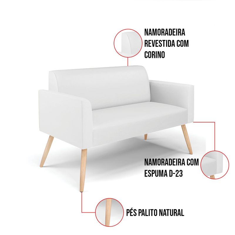 Todo mundo gosta de um ambiente bem decorado, e se for novidade melhor ainda não é mesmo? A D'Rossi, além de entregar beleza, qualidade e confiança aos clientes, ela dispõe das melhores opções em produtos, disponíveis no mercado! Se você quer um produto sofisticado, opte pelo Sofá Namoradeira Marisa. Ele dispõe de um tom lindo no Branco, uma cor leve, neutra e delicada que combina com qualquer estilo de decoração. Esta mobília fica perfeita na sala, escritório, quarto, varanda coberta e onde mais preferir! Sua estrutura é feita em madeira reforçada de eucalipto proveniente de reflorestamento. No assento/encosto contém um revestimento no tecido Corino, com estofamento em espuma prorelax D-23, garantindo maior conforto ao usuário. A sustentação da peça é dada pelos Pés Palito Castanho, garantindo uma resistência melhor, para relaxar o dia todo com mais comodidade. O Sofá Namoradeira Marisa é ideal, para dar aquele realce que seu ambiente precisa. Tenho certeza que, esse móvel é a melhor compra que você irá fazer. Garanta já seu Sofá Namoradeira e se acomode da melhor maneira possível! Dimensões do Sofá Namoradeira: Altura total: 81 cm Largura total: 114 cm Profundidade total: 64 cm Altura do encosto: 36 cm Largura do assento: 96 cm Profundidade do assento: 48 cm Altura do chão ao assento: 45 cm Espessura do assento: 18 cm Tamanho dos pés: 30 cm Espessura do braço: 9 cm Peso: 20 kg Dimensões da Poltrona: Altura total: 81 cm Largura total: 64 cm Profundidade total: 64 cm Altura do encosto: 36 cm Largura do assento: 47 cm Profundidade do assento: 48 cm Altura do chão ao assento: 45 cm Espessura do assento: 18 cm Tamanho dos pés: 30 cm Espessura do braço: 9 cm Peso: 14 kg Especificações do Produto Estrutura: Madeira Eucalipto Espuma: D-23 Tecido: Corino Tipo de pés: Pés Palito Natural Peso suportado: Até 120 Kg Garantia: 90 dias contra defeito de fabricação Montagem: O produto vai montado, apenas rosquear os pés Instruções de limpeza: Utilizar um pano limpo e levemente úmido Você irá receber: 01 Sofá Namoradeira e 01 Poltrona - Entregue em: 02 Volumes Observações Relevantes - Todos os produtos vão embalados com total segurança; - As cores dos produtos podem sofrer alterações dependendo do seu monitor; - Para futuras compras, não garantimos a mesma tonalidade de cor, pois existe variação a cada lote do fabricante do tecido; - As imagens são meramente ilustrativas, não acompanham objetos de decoração e eletros; - Confira as dimensões do produto no momento da compra e certifique-se de que passará normalmente por escadas, elevadores, portas e corredores; - Importante: Por se tratar de estofado as medidas podem ter uma pequena variação em até 3 cm; - Não nos responsabilizamos no ato da entrega por montagens, desmontagens, instalações de produtos; - Não nos responsabilizamos no ato da entrega por subir escadas, elevadores, nem utilização de guinchos ou equipamentos similares para acesso a pisos superiores em apartamentos; - A entrega do produto é realizada em todo território nacional, até onde as rodovias alcançam, entregas fluviais ou aéreas devem ser cotadas a parte; - Observando as orientações acima, evita-se futuros desagrados ou imprevistos com a entrega do produto. Havendo despesas adicionais, serão de responsabilidade do cliente;