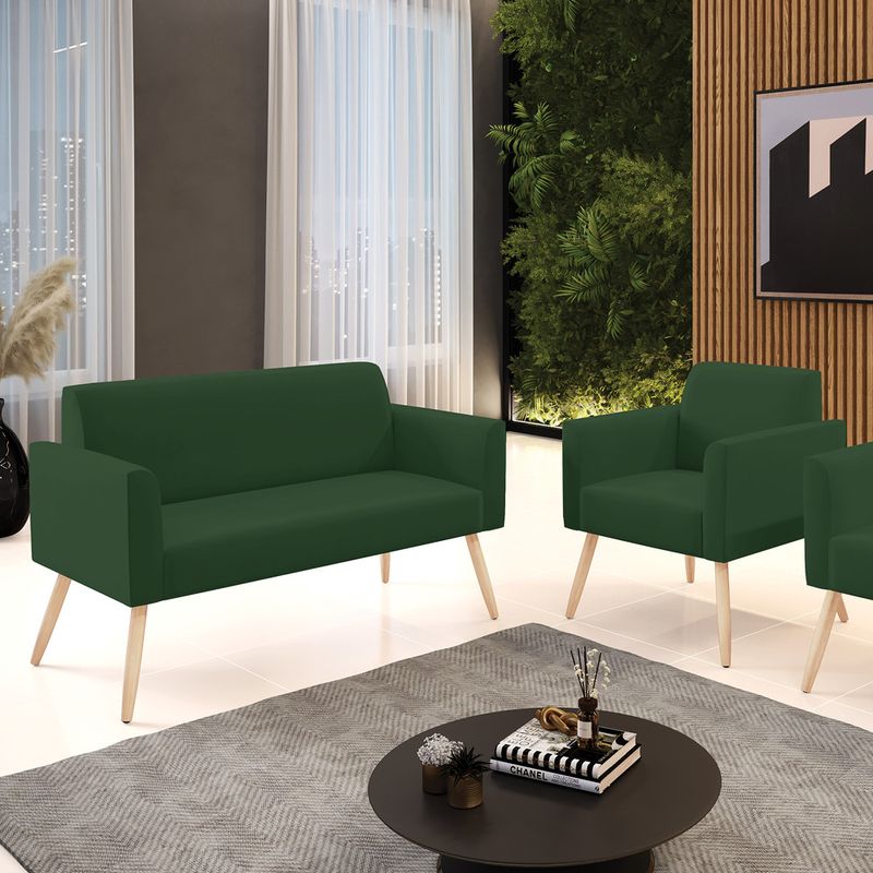 Todo mundo gosta de um ambiente bem decorado, e se for novidade melhor ainda não é mesmo? A D'Rossi, além de entregar beleza, qualidade e confiança aos clientes, ela dispõe das melhores opções em produtos, disponíveis no mercado! Se você quer um produto sofisticado, opte pelo Sofá Namoradeira com Poltrona Marisa. Este kit dispõe de um tom lindo no Verde, uma cor leve, neutra e delicada que combina com qualquer estilo de decoração. Ele fica perfeito na sala, escritório, quarto, varanda coberta e onde mais preferir! Sua estrutura é feita em madeira reforçada de eucalipto proveniente de reflorestamento. No assento/encosto contém um revestimento no tecido Veludo, com estofamento em espuma prorelax D-23, garantindo maior conforto ao usuário. A sustentação da peça é dada pelos Pés Palito Castanho, garantindo uma resistência melhor, para relaxar o dia todo com mais comodidade. O Sofá Namoradeira com Poltrona Marisa é ideal, para dar aquele realce que seu ambiente precisa. Tenho certeza que, esse móvel é a melhor compra que você irá fazer. Garanta já seu Kit e se acomode da melhor maneira possível! Dimensões do Sofá Namoradeira: Altura total: 81 cm Largura total: 114 cm Profundidade total: 64 cm Altura do encosto: 36 cm Largura do assento: 96 cm Profundidade do assento: 48 cm Altura do chão ao assento: 45 cm Espessura do assento: 18 cm Tamanho dos pés: 30 cm Espessura do braço: 9 cm Peso: 20 kg Dimensões da Poltrona: Altura total: 81 cm Largura total: 64 cm Profundidade total: 64 cm Altura do encosto: 36 cm Largura do assento: 47 cm Profundidade do assento: 48 cm Altura do chão ao assento: 45 cm Espessura do assento: 18 cm Tamanho dos pés: 30 cm Espessura do braço: 9 cm Peso: 14 kg Especificações do Produto Estrutura: Madeira Eucalipto Espuma: D-23 Tecido: Veludo Tipo de pés: Pés Palito Natural Peso suportado: Até 120 Kg Garantia: 90 dias contra defeito de fabricação Montagem: O produto vai montado, apenas rosquear os pés Instruções de limpeza: Utilizar um pano limpo e levemente úmido Você irá receber: 01 Sofá Namoradeira e 01 Poltrona - Entregue em: 02 Volumes Observações Relevantes - Todos os produtos vão embalados com total segurança; - As cores dos produtos podem sofrer alterações dependendo do seu monitor; - Para futuras compras, não garantimos a mesma tonalidade de cor, pois existe variação a cada lote do fabricante do tecido; - As imagens são meramente ilustrativas, não acompanham objetos de decoração e eletros; - Confira as dimensões do produto no momento da compra e certifique-se de que passará normalmente por escadas, elevadores, portas e corredores; - Importante: Por se tratar de estofado as medidas podem ter uma pequena variação em até 3 cm; - Não nos responsabilizamos no ato da entrega por montagens, desmontagens, instalações de produtos; - Não nos responsabilizamos no ato da entrega por subir escadas, elevadores, nem utilização de guinchos ou equipamentos similares para acesso a pisos superiores em apartamentos; - A entrega do produto é realizada em todo território nacional, até onde as rodovias alcançam, entregas fluviais ou aéreas devem ser cotadas a parte; - Observando as orientações acima, evita-se futuros desagrados ou imprevistos com a entrega do produto. Havendo despesas adicionais, serão de responsabilidade do cliente;