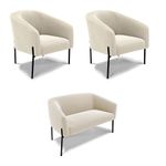 Tem novidades chegando por aqui! Olha só essa nossa inéditaNamoradeira e 2 Poltronas Stella Bouclê. Sim, as melhores opções em Namoradeira estão aqui! A Namoradeira e 2 Poltronas Stella Bouclê é para todas as ocasiões, é ideal para você relaxar, assistir tv ou ler um livro, mantendo-o confortável ao longo do dia! Um estofado versátil, que foge do convencional pelo seu design e tecido luxuoso. Seu formato curvo, marcante e sofisticado, oferece conforto de forma excepcional, com aquela sensação de abraço, que deixa o coração quentinho! Desenvolvida com atenção aos detalhes, para atender todas suas expectativas e necessidades. Seu aspecto arredondado e anatômico, possibilita que a postura fique sempre alinhada, mantendo a coluna na posição correta. Ela dispõe de um acabamento impecável, revestida em Bouclê em tom Bege, um tecido maleável que além de ser muito bonito, é a grande tendência do momento, por ser uma lã mais refinada, quente, com toque suave e agradável, semelhante à textura natural da ovelha. Contém uma estrutura robusta, sua sustentação é dada pelos Pés de Ferro no tom Preto, que garantem mais segurança e firmeza ao sentar-se. Já o enchimento é feito em espuma D-23 no encosto e assento, garantindo maior conforto ao usuário. Ah! Vale a pena lembrar que a Namoradeira e 2 Poltronas Stella Bouclê, foi produzida em quantidades limitadas, para aqueles que procuram criar um visual diferenciado e exclusivo. Então, não deixe de aproveitar esse lançamento, hem! Leve a sua agora mesmo. Dimensões da Poltrona: Altura Total: 81 cm Largura Total: 77 cm Profundidade Total: 60 cm Altura do Encosto: 40 cm Largura do Assento: 45 cm Profundidade do Assento: 45 cm Altura do chão ao Assento: 45 cm Espessura do Assento: 15 cm Espessura do braço: 7 cm Altura do chão ao braço: 70 cm Altura interna do braço: 28 cm Tamanho dos pés: 30 cm Peso: 17 kg Dimensões da Namoradeira: Altura Total: 81 cm Largura Total: 127 cm Profundidade Total: 60 cm Altura do Encosto: 40 cm Largura do Assento: 95 cm Profundidade do Assento: 45 cm Altura do chão ao Assento: 45 cm Espessura do Assento: 15 cm Espessura do braço: 7 cm Altura do chão ao braço: 70 cm Altura interna do braço: 28 cm Tamanho dos pés: 30 cm Peso: 25 kg Especificações do Produto: Estrutura: Madeira Eucalipto Espuma: D-23 Tecido: Bouclê Peso Suportado: Até 120 Kg Tipo de Pés: Pés de Ferro Lateral Preto Tipo de Encosto: Fixo Tipo de Assento: Fixo Complexidade da Montagem: Baixo Montagem: O produto vai montado, apenas parafusar a base Garantia: 90 dias contra defeito de fabricação Instruções de Limpeza: Utilizar um pano limpo e levemente úmido Você irá Receber: 01 Sofá Namoradeira e 02 Poltronas - Entregue em: 03 Volumes