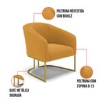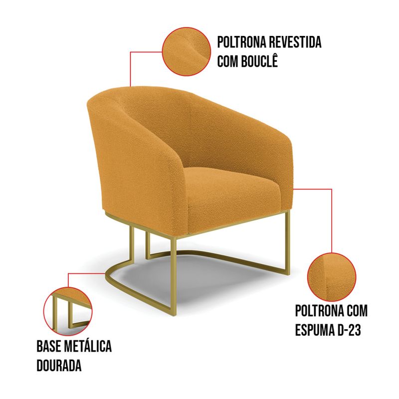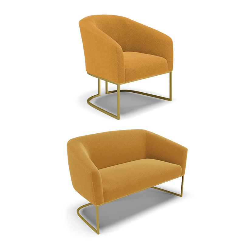 Tem novidades chegando por aqui! Olha só essa nossa inédita Namoradeira e Poltrona Stella Bouclê. Sim, as melhores opções em Namoradeira estão aqui! A Namoradeira e Poltrona Stella Bouclê é para todas as ocasiões, é ideal para você relaxar, assistir tv ou ler um livro, mantendo-o confortável ao longo do dia! Um estofado versátil, que foge do convencional pelo seu design e tecido luxuoso. Seu formato curvo, marcante e sofisticado, oferece conforto de forma excepcional, com aquela sensação de abraço, que deixa o coração quentinho! Desenvolvida com atenção aos detalhes, para atender todas suas expectativas e necessidades. Seu aspecto arredondado e anatômico, possibilita que a postura fique sempre alinhada, mantendo a coluna na posição correta. Ela dispõe de um acabamento impecável, revestida em Bouclê em tom Mostarda, um tecido maleável que além de ser muito bonito, é a grande tendência do momento, por ser uma lã mais refinada, quente, com toque suave e agradável, semelhante à textura natural da ovelha. Contém uma estrutura robusta, sua sustentação é dada pela Base Industrial no tom Dourado, que garantem mais segurança e firmeza ao sentar-se. Já o enchimento é feito em espuma D-23 no encosto e assento, garantindo maior conforto ao usuário. Ah! Vale a pena lembrar que a Namoradeira e Poltrona Stella Bouclê, foi produzida em quantidades limitadas, para aqueles que procuram criar um visual diferenciado e exclusivo. Então, não deixe de aproveitar esse lançamento, hem! Leve a sua agora mesmo. Dimensões da Poltrona: Altura Total: 81 cm Largura Total: 68 cm Profundidade Total: 60 cm Altura do Encosto: 40 cm Largura do Assento: 45 cm Profundidade do Assento: 45 cm Altura do chão ao Assento: 45 cm Espessura do Assento: 15 cm Espessura do braço: 7 cm Altura do chão ao braço: 70 cm Altura interna do braço: 28 cm Tamanho dos pés: 30 cm Peso: 18 kg Dimensões da Namoradeira: Altura Total: 80 cm Largura Total: 120 cm Profundidade Total: 63 cm Altura do Encosto: 39 cm Largura do Assento: 100 cm Profundidade do Assento: 45 cm Altura do chão ao Assento: 45 cm Espessura do Assento: 15 cm Espessura do braço: 7 cm Altura do chão ao braço: 70 cm Altura interna do braço: 25 cm Tamanho dos pés: 30 cm Peso: 26 kg Especificações do Produto: Estrutura: Madeira Eucalipto Espuma: D-23 Tecido: Bouclê Peso Suportado: Até 180 Kg Tipo de Pés: Base Industrial Dourado Tipo de Encosto: Fixo Tipo de Assento: Fixo Complexidade da Montagem: Baixo Montagem: O produto vai montado, apenas parafusar a base Garantia: 90 dias contra defeito de fabricação Instruções de Limpeza: Utilizar um pano limpo e levemente úmido Você irá Receber: 01 Sofá Namoradeira e 01 Poltrona - Entregue em: 02 Volumes