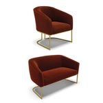O Sofá Namoradeira 2 lugares com Potrona Stella é uma peça que combina elegância, conforto e durabilidade. Este conjunto tem um design moderno e sofisticado, com Base Industrial Dourado e revestimento em tecido Bouclê Terra, que harmonizam com qualquer ambiente. Ele é ideal para sala de estar, recepções, mesa de jantar ou qualquer outro espaço que você queira decorar com estilo e bom gosto. Ele tem uma estrutura em madeira de reflorestamento eucalipto, que garante a resistência e a sustentabilidade do produto. Ele suporta até 120 kg de peso, podendo ser utilizado por pessoas de diferentes biotipos. Ele tem um acabamento reforçado e espuma de qualidade D23, que oferece maciez e aconchego. Tem pés em aço carbono e pintura eletrostática, que protegem o produto contra corrosão e desgaste. Ele tem assento com persintas elásticas, que proporcionam flexibilidade e conforto. O kit Stella é um produto de alta qualidade, beleza e funcionalidade. Ele é fácil de transportar, pois tem um peso leve e um tamanho compacto. O Sofá Namoradeira 2 lugares com Potrona Stella é um produto que vai fazer a diferença na sua decoração e no seu bem-estar. Ele vai trazer charme, conforto e durabilidade para o seu ambiente. Aproveite essa oferta e leve para casa um Sofá Namoradeira 2 lugares com Potrona qualidade por um preço incrível. Essa é a sua chance de ter um kit maravilhoso por um preço imperdível. Corra e garanta seu Sofá Namoradeira 2 lugares com Potrona antes que acabe o estoque! Dimensões da Poltrona: Altura total: 81 cm Largura total: 68 cm Profundidade total: 60 cm Altura do encosto: 40 cm Largura do assento: 45 cm Profundidade do assento: 45 cm Altura do chão ao assento: 45 cm Espessura do assento: 15 cm Tamanho dos pés: 30 cm Altura do chão ao braço: 70 cm Altura interna do braço: 28 cm Espessura do braço: 7 cm Peso: 21 kg Dimensões da Namoradeira: Altura total: 80 cm Largura total: 120 cm Profundidade total: 63 cm Altura do encosto: 39 cm Largura do assento: 100 cm Profundidade do assento: 45 cm Altura do chão ao assento: 45 cm Espessura do assento: 15 cm Altura do chão ao braço: 70 cm Altura interna do braço: 25 cm Tamanho dos pés: 30 cm Espessura do braço: 7 cm Peso: 21 kg Especificações do Produto Estrutura: Madeira Eucalipto Espuma: D-23 Tecido: Corino Tipo de pés: Base Industrial Dourada Peso suportado: Até 120 Kg Garantia: 90 dias contra defeito de fabricação Montagem: O produto vai montado, apenas parafusar a base Instruções de limpeza: Utilizar um pano limpo e levemente úmido Você irá receber: 01 Sofá Namoradeira e 01 Poltrona - Entregue em: 02 Volumes
