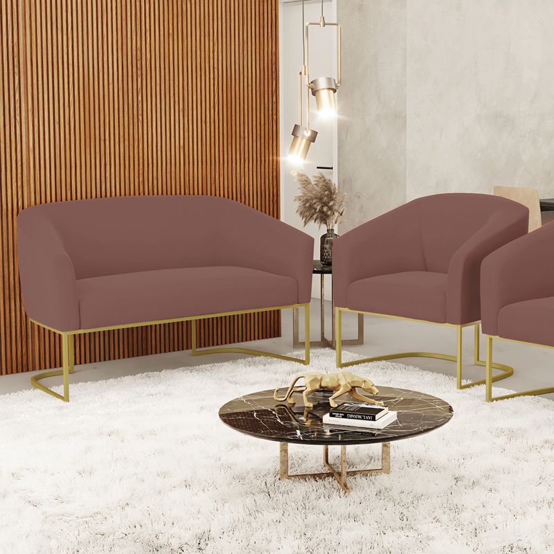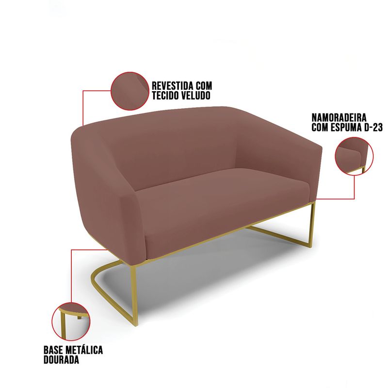 O Sofá 2 Lugares Namoradeira e 1 Poltrona Stella é a combinação perfeita de conforto, elegância e modernidade. Seu design curvo e marcante oferece uma sensação única de aconchego, como um abraço acolhedor, tornando-se a peça ideal para compor sua decoração com estilo e sofisticação. Revestido em Veludo rosê, a poltrona traz o toque da tendência atual. Seja na sala de estar, quarto ou escritório, ela se adapta com facilidade. Sua estrutura robusta é sustentada por uma base industrial na cor dourada, unindo resistência e design contemporâneo. A tendência do estilo industrial ganha destaque, conferindo sofisticação ao móvel, que é perfeito para qualquer espaço que exija funcionalidade e bom gosto. Com enchimento em espuma D-23 no encosto e assento, o Sofá 2 Lugares Namoradeira e 1 Poltrona Stella garante o máximo de conforto, mesmo em longos períodos de uso. Seu acabamento impecável reflete a qualidade dos produtos oferecidos pela D'Rossi, que sempre prioriza resistência e durabilidade. Além de oferecer produtos incríveis, a D'Rossi se dedica a proporcionar a melhor experiência de compra, combinando uma seleção de itens decorativos de alta qualidade, como tapetes, quadros, espelhos e mais, com um atendimento excepcional para transformar sua decoração com estilo e confiança. OBSERVAÇÃO IMPORTANTE: A entrega é realizada no endereço informado, não realizamos o transporte para andares superiores, como subir escadas, elevadores ou guinchos. Não realizamos montagens, desmontagens ou instalações. Todos esses serviços são de responsabilidade do comprador. Dimensões da Poltrona: Altura Total: 81 cm Largura Total: 68 cm Profundidade Total: 60 cm Altura do Encosto: 40 cm Largura do Assento: 45 cm Profundidade do Assento: 45 cm Altura do chão ao Assento: 45 cm Espessura do Assento: 15 cm Espessura do braço: 7 cm Altura do chão ao braço: 70 cm Altura interna do braço: 28 cm Tamanho dos pés: 30 cm Peso: 21 kg Dimensões da Namoradeira: Altura Total: 80 cm Largura Total: 120 cm Profundidade Total: 63 cm Altura do Encosto: 39 cm Largura Livre do Assento: 100 cm Profundidade do Assento: 45 cm Altura do chão ao Assento: 45 cm Espessura do Assento: 15 cm Espessura do braço: 7 cm Altura do chão ao braço: 70 cm Altura interna do braço: 25 cm Tamanho dos pés: 30 cm Peso: 26 kg Especificações do Produto: Estrutura: Madeira Eucalipto Espuma: D-23 Tecido: VeludoPeso Suportado: Até 180 Kg Tipo de Pés: Base Industrial Dourado Tipo de Encosto: Fixo Tipo de Assento: Fixo Complexidade da Montagem: Baixo Montagem: O produto vai montado, apenas parafusar a base Garantia: 90 dias contra defeito de fabricação Instruções de Limpeza: Utilizar um pano limpo e levemente úmido Você irá Receber: 01 Sofá Namoradeira e 01 Poltrona - Entregue em: 02 Volumes