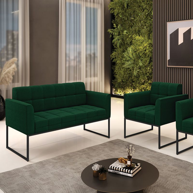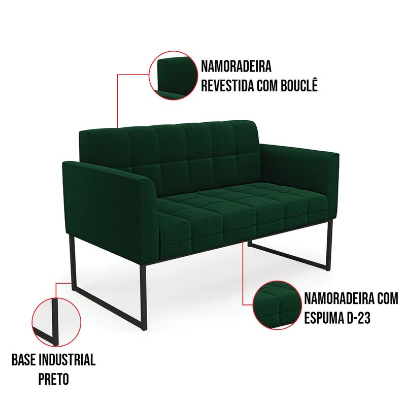 O Sofá Namoradeira e Poltrona Elisa é uma mobília que combina elegância, conforto e durabilidade. Ele tem um design retrô e sofisticado, com Base Industrial Preto e revestimento em tecido Bouclê Verde, que harmonizam com qualquer ambiente. Ele é ideal para sala de estar, recepções, escritórios, cozinhas ou qualquer outro espaço que você queira decorar com estilo e bom gosto. Ele tem uma estrutura em madeira de reflorestamento eucalipto, que garante a resistência e a sustentabilidade do produto. Ele suporta até 180 kg de peso, podendo ser utilizada por pessoas de diferentes biotipos. Ele tem um acabamento reforçado e espuma de qualidade D23, que oferece maciez e aconchego. Ele contém detalhes de costura no encosto e assento, resultando em um acabamento impecável, conferindo muito mais valor e elegância ao produto. O Sofá Namoradeira e Poltrona Elisa é um móvel de alta qualidade, beleza e funcionalidade. Ele é fácil de transportar, pois tem um peso leve e um tamanho compacto. O Sofá Namoradeira e Poltrona Elisa é um produto que vai fazer a diferença na sua decoração e no seu bem-estar. Ele vai trazer charme, conforto e durabilidade para o seu ambiente. Aproveite essa oferta e leve para casa um Sofá Namoradeira e Poltrona de qualidade por um preço incrível. Essa é a sua chance de ter um Sofá Namoradeira e Poltrona maravilhoso por um preço imperdível. Corra e garanta o seu antes que acabe o estoque! Dimensões da Poltrona: Altura Total: 82 cm Largura Total: 64 cm Profundidade Total: 64 cm Altura do Encosto: 36 cm Largura do Assento: 47 cm Profundidade do Assento: 48 cm Altura do chão ao Assento: 45 cm Espessura do Assento: 18 cm Espessura do braço: 9 cm Altura do chão ao braço: 67 cm Altura interna do braço: 20 cm Tamanho dos pés: 30 cm Peso: 17 kg Dimensões da Namoradeira: Altura Total: 82 cm Largura Total: 114 cm Profundidade Total: 64 cm Altura do Encosto: 36 cm Largura do Assento: 96 cm Profundidade do Assento: 48 cm Altura do chão ao Assento: 45 cm Espessura do Assento: 18 cm Espessura do braço: 9 cm Altura do chão ao braço: 67 cm Altura interna do braço: 20 cm Tamanho dos pés: 30 cm Peso: 20 kg Especificações do Produto: Estrutura: Madeira Eucalipto Espuma: D-23 Tecido: Bouclê Peso Suportado: Até 180 Kg Tipo de Pés: Base Industrial Preto Tipo de Encosto: Fixo Tipo de Assento: Fixo Complexidade da Montagem: Baixo Montagem: O produto vai montado, apenas parafusar a base Garantia: 90 dias contra defeito de fabricação Instruções de Limpeza: Utilizar um pano limpo e levemente úmido Você irá Receber: 01 Sofá Namoradeira e 01 Poltrona - Entregue em: 02 Volumes