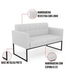 Você gosta de colecionar vários momentos memoráveis com sua família e amigos? Que tal recebê-los, com móveis de altíssima qualidade que só a D?Rossi tem? A Namoradeira 2 Lugares Elisa é adequada para você! Seu design retrô é a grande tendência do momento. Pode ser usada em diversos espaços da casa, em salas, hall de entrada, quartos, cozinhas, varanda, sacada, escritório, dentre outros. Contém as seguintes características: A estrutura é feita de madeira de Eucalipto 100% de reflorestamento, e a Base Industrial Metálica Preto, além de ser resistente e durável, suporta em média até 120 kg. Assento, encosto e braços, contém enchimento de espuma D-23 e é estofada em tecido Linho, no tom Cinza, que oferece muito conforto e resistência ao sentar, com aquela sensação de maciez e aconchego. Possui também, detalhes de costura no encosto e assento, resultando em um acabamento impecável, conferindo muito mais valor e elegância ao seu espaço. Para complementar a decoração com essa linda namoradeira, a dica é utilizar mantas, almofadas ou vasinho de flor. E pronto, seu cantinho estará perfeito para descansar e relaxar! Aqui, você encontra várias opções, para que seus amigos e familiares se sintam acolhidos. Garanta já sua Namoradeira Elisa. Dimensões da Sofá Namoradeira: Altura total: 80 cm Largura total: 112 cm Profundidade total: 65 cm Altura do encosto: 36 cm Largura do assento: 94 cm Profundidade do assento: 47 cm Altura do chão ao assento: 46 cm Espessura do assento: 16 cm Tamanho dos pés: 30 cm Espessura do braço: 9 cm Peso: 19 kg Especificações do Produto Estrutura: Madeira Eucalipto Espuma: D-23 Tecido: Linho Tipo de pés: Base Metálica Industrial Peso suportado: Até 120 Kg Garantia: 90 dias contra defeito de fabricação Montagem: O produto vai montado, apenas rosquear os pés Instruções de limpeza: Utilizar um pano limpo e levemente úmido Você irá receber: 01 Sofá Namoradeira - Entregue em: 01 Volume Observações Relevantes - Todos os produtos vão embalados com total segurança; - As cores dos produtos podem sofrer alterações dependendo do seu monitor; - Para futuras compras, não garantimos a mesma tonalidade de cor, pois existe variação a cada lote do fabricante do tecido; - As imagens são meramente ilustrativas, não acompanham objetos de decoração e eletros; - Confira as dimensões do produto no momento da compra e certifique-se de que passará normalmente por escadas, elevadores, portas e corredores; - Importante: Por se tratar de estofado as medidas podem ter uma pequena variação em até 3 cm; - Não nos responsabilizamos no ato da entrega por montagens, desmontagens, instalações de produtos; - Não nos responsabilizamos no ato da entrega por subir escadas, elevadores, nem utilização de guinchos ou equipamentos similares para acesso a pisos superiores em apartamentos; - A entrega do produto é realizada em todo território nacional, até onde as rodovias alcançam, entregas fluviais ou aéreas devem ser cotadas a parte; - Observando as orientações acima, evita-se futuros desagrados ou imprevistos com a entrega do produto. Havendo despesas adicionais, serão de responsabilidade do cliente;