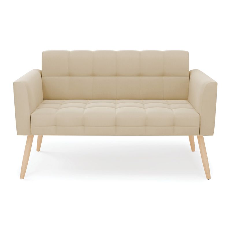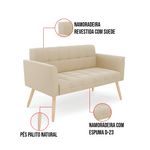 Você gosta de colecionar vários momentos memoráveis com sua família e amigos? Que tal recebê-los, com móveis de altíssima qualidade que só a D'Rossi tem? A Namoradeira 2 Lugares Elisa é adequada para você! Seu design retrô é a grande tendência do momento. Pode ser utilizada em diversos espaços da casa, em salas, hall de entrada, quartos, cozinhas, varanda, sacada, escritório, dentre outros. Contém as seguintes características: A estrutura é feita de madeira de Eucalipto 100% de reflorestamento, e os Pés Palito Natural, além de serem resistentes e duráveis, suportam em média até 120 kg. Assento, encosto e braços, contém enchimento de espuma D-23 e é estofada em tecido Suede, no tom Bege, que oferece muito conforto e resistência ao sentar, com aquela sensação de maciez e aconchego. Possui também, detalhes de costura no encosto e assento, resultando em um acabamento impecável, conferindo muito mais valor e elegância ao seu espaço. Para complementar a decoração com essa linda namoradeira, a dica é utilizar mantas, almofadas ou vasinho de flor. E pronto, seu cantinho estará perfeito para descansar e relaxar! Aqui, você encontra várias opções, para que seus amigos e familiares se sintam acolhidos. Garanta já sua Namoradeira Elisa. Dimensões da Sofá Namoradeira: Altura total: 80 cm Largura total: 112 cm Profundidade total: 65 cm Altura do encosto: 36 cm Largura do assento: 94 cm Profundidade do assento: 47 cm Altura do chão ao assento: 46 cm Espessura do assento: 16 cm Tamanho dos pés: 30 cm Espessura do braço: 9 cm Peso: 19 kg Especificações do Produto Estrutura: Madeira Eucalipto Espuma: D-23 Tecido: Suede Tipo de pés: Pés Palito Natural Peso suportado: Até 120 Kg Garantia: 90 dias contra defeito de fabricação Montagem: O produto vai montado, apenas rosquear os pés Instruções de limpeza: Utilizar um pano limpo e levemente úmido Você irá receber: 01 Sofá Namoradeira - Entregue em: 01 Volume Observações Relevantes - Todos os produtos vão embalados com total segurança; - As cores dos produtos podem sofrer alterações dependendo do seu monitor; - Para futuras compras, não garantimos a mesma tonalidade de cor, pois existe variação a cada lote do fabricante do tecido; - As imagens são meramente ilustrativas, não acompanham objetos de decoração e eletros; - Confira as dimensões do produto no momento da compra e certifique-se de que passará normalmente por escadas, elevadores, portas e corredores; - Importante: Por se tratar de estofado as medidas podem ter uma pequena variação em até 3 cm; - Não nos responsabilizamos no ato da entrega por montagens, desmontagens, instalações de produtos; - Não nos responsabilizamos no ato da entrega por subir escadas, elevadores, nem utilização de guinchos ou equipamentos similares para acesso a pisos superiores em apartamentos; - A entrega do produto é realizada em todo território nacional, até onde as rodovias alcançam, entregas fluviais ou aéreas devem ser cotadas a parte; - Observando as orientações acima, evita-se futuros desagrados ou imprevistos com a entrega do produto. Havendo despesas adicionais, serão de responsabilidade do cliente;
