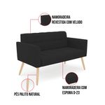 Você gosta de colecionar vários momentos memoráveis com sua família e amigos? Que tal recebê-los, com móveis de altíssima qualidade que só a D'Rossi tem? A Namoradeira 2 Lugares Elisa é adequada para você! Seu design retrô é a grande tendência do momento. Pode ser utilizada em diversos espaços da casa, em salas, hall de entrada, quartos, cozinhas, varanda, sacada, escritório, dentre outros. Contém as seguintes características: A estrutura é feita de madeira de Eucalipto 100% de reflorestamento, e os Pés Palito Natural, além de serem resistentes e duráveis, suportam em média até 120 kg. Assento, encosto e braços, contém enchimento de espuma D-23 e é estofada em tecido Veludo, no tom Preto, que oferece muito conforto e resistência ao sentar, com aquela sensação de maciez e aconchego. Possui também, detalhes de costura no encosto e assento, resultando em um acabamento impecável, conferindo muito mais valor e elegância ao seu espaço. Para complementar a decoração com essa linda namoradeira, a dica é utilizar mantas, almofadas ou vasinho de flor. E pronto, seu cantinho estará perfeito para descansar e relaxar! Aqui, você encontra várias opções, para que seus amigos e familiares se sintam acolhidos. Garanta já sua Namoradeira Elisa. Dimensões da Sofá Namoradeira: Altura total: 80 cm Largura total: 112 cm Profundidade total: 65 cm Altura do encosto: 36 cm Largura do assento: 94 cm Profundidade do assento: 47 cm Altura do chão ao assento: 46 cm Espessura do assento: 16 cm Tamanho dos pés: 30 cm Espessura do braço: 9 cm Peso: 19 kg Especificações do Produto Estrutura: Madeira Eucalipto Espuma: D-23 Tecido: Veludo Tipo de pés: Pés Palito Natural Peso suportado: Até 120 Kg Garantia: 90 dias contra defeito de fabricação Montagem: O produto vai montado, apenas rosquear os pés Instruções de limpeza: Utilizar um pano limpo e levemente úmido Você irá receber: 01 Sofá Namoradeira - Entregue em: 01 Volume Observações Relevantes - Todos os produtos vão embalados com total segurança; - As cores dos produtos podem sofrer alterações dependendo do seu monitor; - Para futuras compras, não garantimos a mesma tonalidade de cor, pois existe variação a cada lote do fabricante do tecido; - As imagens são meramente ilustrativas, não acompanham objetos de decoração e eletros; - Confira as dimensões do produto no momento da compra e certifique-se de que passará normalmente por escadas, elevadores, portas e corredores; - Importante: Por se tratar de estofado as medidas podem ter uma pequena variação em até 3 cm; - Não nos responsabilizamos no ato da entrega por montagens, desmontagens, instalações de produtos; - Não nos responsabilizamos no ato da entrega por subir escadas, elevadores, nem utilização de guinchos ou equipamentos similares para acesso a pisos superiores em apartamentos; - A entrega do produto é realizada em todo território nacional, até onde as rodovias alcançam, entregas fluviais ou aéreas devem ser cotadas a parte; - Observando as orientações acima, evita-se futuros desagrados ou imprevistos com a entrega do produto. Havendo despesas adicionais, serão de responsabilidade do cliente;