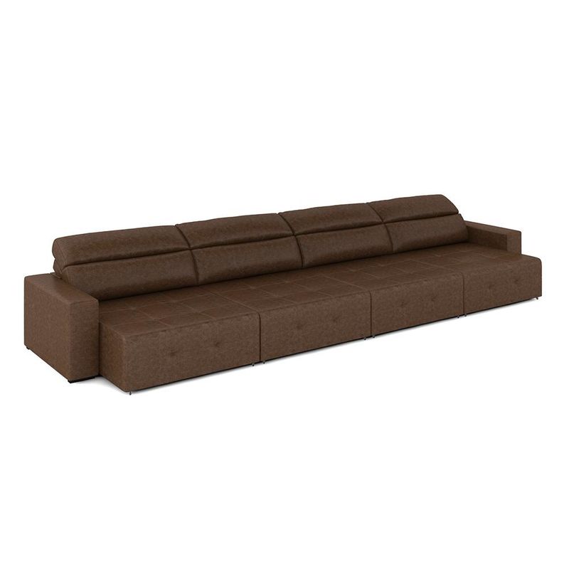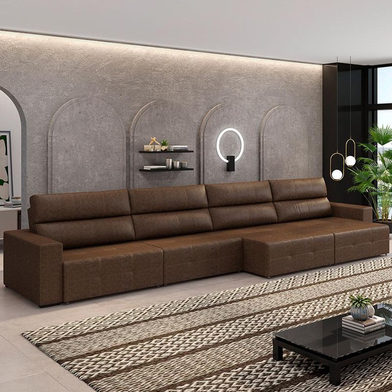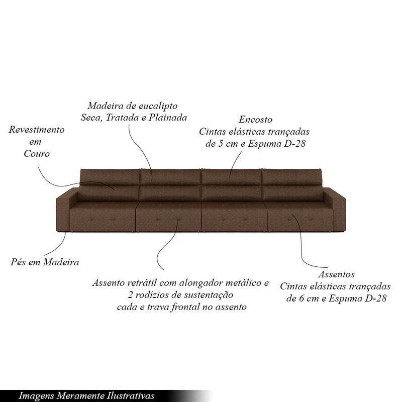 Descrição do Produto: Sofá Retrátil Nero Couro - Gran Belo é aquele toque de elegância que falta em seu ambiente. Com design moderno, o Sofá Nero é produzido com madeira de eucalipto tratada, assim, seu ambiente além de elegante, também ajuda o meio ambiente. E tem mais, o encosto é ajustável em até 5 posições e possui trava frontal no assento retrátil. Corra e aproveite! Dimensões do Produto: Largura: 364 cm Altura: 110 cm Profundidade Fechado: 115 cm Profundidade Aberto: 185 cm Largura do Assento: 80 cm Largura do Braço: 22 cm Características do Produto: Material da Estrutura: Madeira de eucalipto seca, tratada e plainada Encosto: Cintas elásticas trançadas de 5 cm e Espuma D-28 Assento: Cintas elásticas trançadas de 6 cm e Espuma D-28 Material dos Pés: Madeira Revestimento: Couro Diferencial: Assento retrátil com alongador metálico e 2 rodízios de sustentação cada e trava frontal no assento Peso Suportado: 120 Kg por Assento Conteúdo da Embalagem: 1 Sofá de 4 Módulos Necessita de Montagem: Não Instruções/Cuidado: Utilizar um pano levemente umedecido com água, seguido de pano seco. Evitar exposição ao sol, para que o produto não sofra alterações na cor. Não limpar com escovas ou produtos abrasivos. Observações Importantes: - As imagens são meramente ilustrativas e não acompanham objetos de decoração e eletros - Pode haver alguma diferença de tonalidade entre a imagem e o produto, por conta do tratamento de imagens e a calibração de cores da sua tela. - Todos os nossos produtos são enviados devidamente embalados e com total segurança - Confira as dimensões do produto no momento da compra e certifique-se de que passará normalmente por elevadores, portas, escadas e/ou corredores, evitando assim futuros desagrados ou imprevistos com a entrega do produto.
