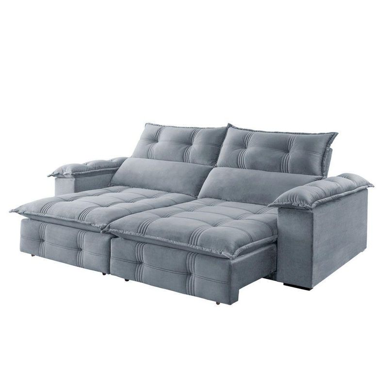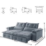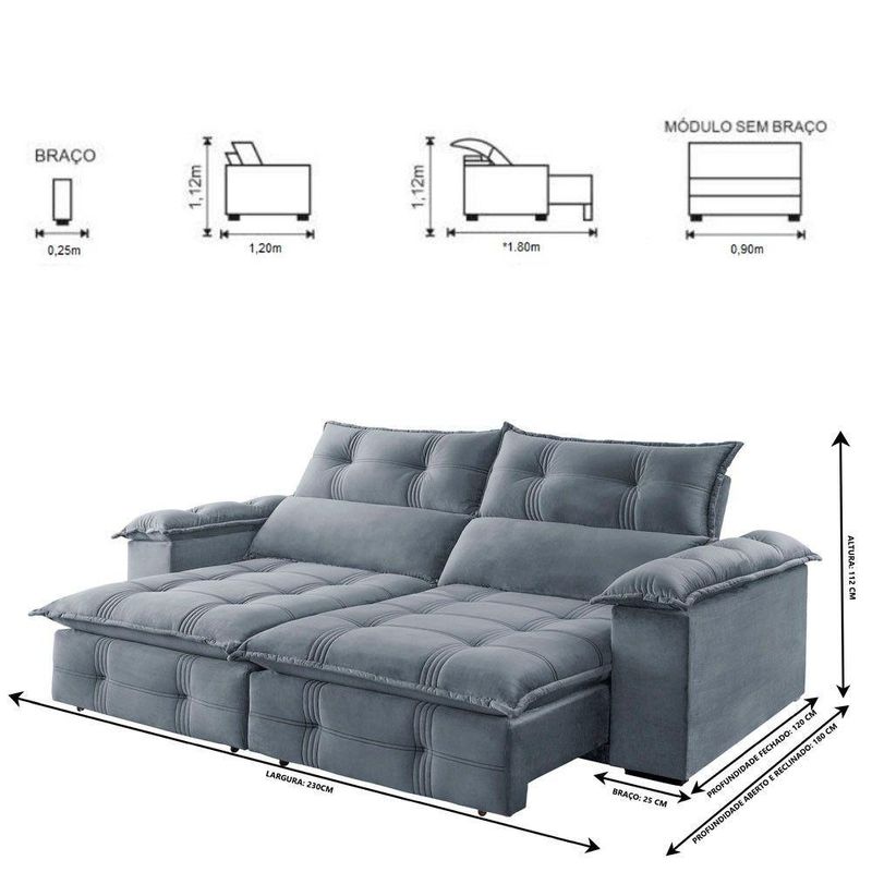 Sofá Retrátil E Reclinável Atlas 2,30m 04 Lugares Mola Ensacada Txr PrataSuavidade e conforto em sua casa com o Sofá Atlas que possui encosto reclinável, assento com Pillow de molas ensacadas, percinta elástica tipo italiana para maior durabilidade, fibra siliconada, assento retrátil com rodízios que facilitam seu movimento. Características: Marca: TXR Modelo: Atlas Tipo: Sofá 4 lugares Retrátil e Reclinável Estrutura: Madeira de origem certificada, Eucalipto Revestimento: Tecido Veludo Pés: Madeira Reflorestada Assento: Retrátil de duplo molejo - mola Bonnel + percinta tipo Italiana + Pillow de molas ensacadas com espuma D28 Encosto: Reclinável em 5 estágios, 100 fibra de silicone Braços: 25 cm com pillow 100 fibra de silicone Retrátil e Reclinável: Com mecanismo em aço Dimensões: Altura: 112 cm Largura: 230 cm Profundidade Fechado: 120 cm Profundidade Aberto: 180 cm (com encosto reclinado) Peso: 99 kg Garantia do Fornecedor: 03 meses Atenção !!! Não possuímos serviço de montagem. Não nos responsabilizamos pelos custos de montagem. É de extrema importância ficar atento às dimensões dos produtos, pois é de sua total responsabilidade caso o produto tenha dimensões superiores ao local de acesso da entrega dificultando ou impossibilitando que a mesma seja concluída. Não nos responsabilizamos, no ato da entrega, por subir escadas, corredores e elevadores ou transporte por guincho em apartamentos. Não nos responsabilizamos por transtornos com a entrega caso o produto necessite de desmontagem, nem pelos custos gerados por esta situação. Imagens meramente ilustrativas. A cor pode variar de acordo com a iluminação do ambiente. Itens de decoração não inclusos. Sobre Embalagem: papelão e malha.