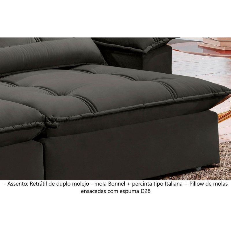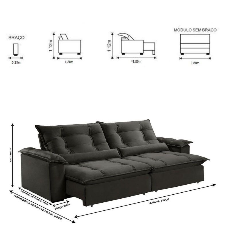 Sofá Retrátil E Reclinável Apolo 2,10m 03 Lugares Mola Ensacada Txr CinzaSuavidade e conforto em sua casa com o Sofá Apolo que possui encosto reclinável, assento com Pillow de molas ensacadas , percinta elástica tipo italiana para maior durabilidade, fibra siliconada, assento retrátil com rodízios que facilitam seu movimento. Características: Marca: TXR Modelo: Apolo Tipo: Sofá 3 lugares Retrátil e Reclinável Estrutura: Madeira de origem certificada, Eucalipto Revestimento: Tecido Veludo Pés: Madeira Reflorestada Assento: Retrátil de duplo molejo - mola Bonnel + percinta tipo Italiana + Pillow de molas ensacadas com espuma D28 Encosto: Reclinável em 5 estágios, 100 fibra de silicone Braços: 25 cm com pillow 100 fibra de silicone Rineira: Almofada de fibra de silicone com zíper Retrátil e Reclinável: Com mecanismo em aço Dimensões: Altura: 112 cm Largura: 210 cm Profundidade Fechado: 120 cm Profundidade Aberto: 180 cm (com encosto reclinado) Peso: 94 kg Garantia do Fornecedor: 03 meses Atenção !!! Não possuímos serviço de montagem. Não nos responsabilizamos pelos custos de montagem. É de extrema importância ficar atento às dimensões dos produtos, pois é de sua total responsabilidade caso o produto tenha dimensões superiores ao local de acesso da entrega dificultando ou impossibilitando que a mesma seja concluída. Não nos responsabilizamos, no ato da entrega, por subir escadas, corredores e elevadores ou transporte por guincho em apartamentos. Não nos responsabilizamos por transtornos com a entrega caso o produto necessite de desmontagem, nem pelos custos gerados por esta situação. Imagens meramente ilustrativas. A cor pode variar de acordo com a iluminação do ambiente. Itens de decoração não inclusos.