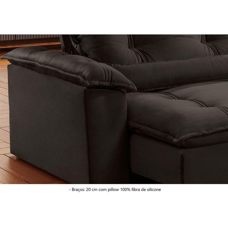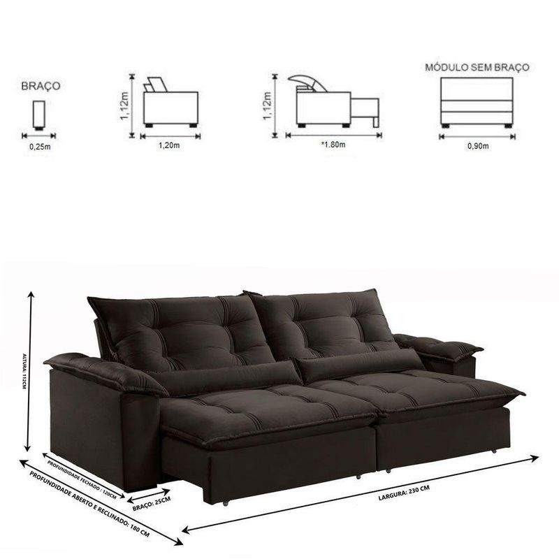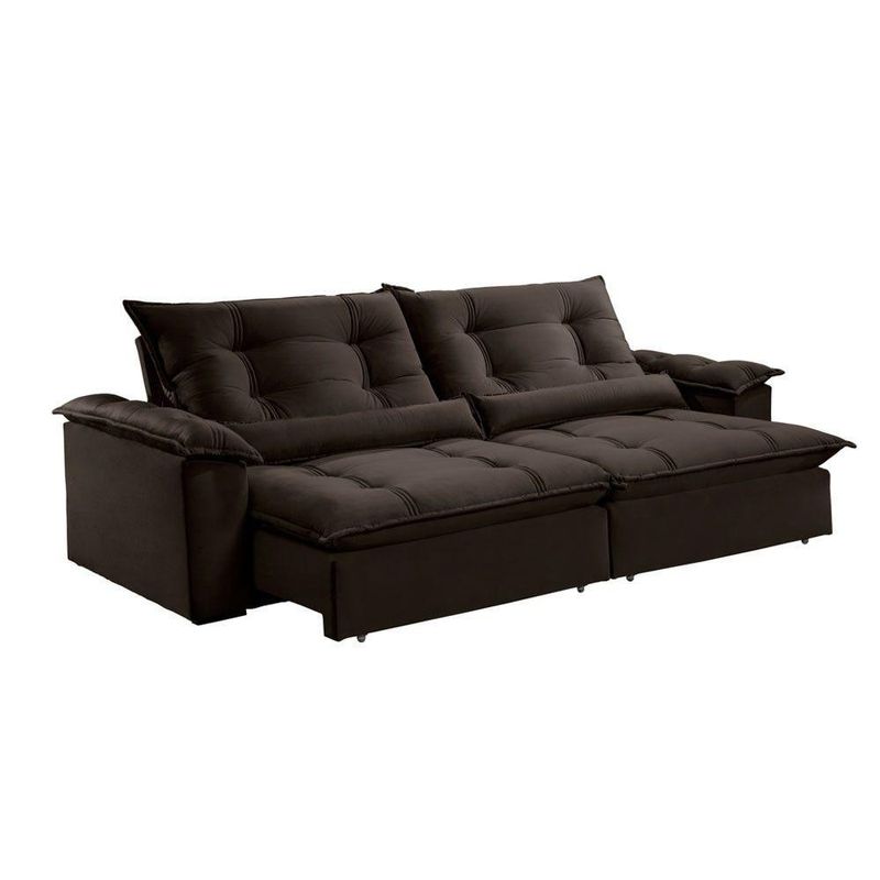 Sofá Retrátil E Reclinável Apolo 2,30m 04 Lugares Mola Ensacada Txr MarromSuavidade e conforto em sua casa com o Sofá Apolo que possui encosto reclinável, assento com Pillow de molas ensacadas , percinta elástica tipo italiana para maior durabilidade, fibra siliconada, assento retrátil com rodízios que facilitam seu movimento. Características: Marca: TXR Modelo: Apolo Tipo: Sofá 4 lugares Retrátil e Reclinável Estrutura: Madeira de origem certificada, Eucalipto Revestimento: Tecido Veludo Pés: Madeira Reflorestada Assento: Retrátil de duplo molejo - mola Bonnel + percinta tipo Italiana + Pillow de molas ensacadas com espuma D28 Encosto: Reclinável em 5 estágios, 100 fibra de silicone Braços: 25 cm com pillow 100 fibra de silicone Rineira: Almofada de fibra de silicone com zíper Retrátil e Reclinável: Com mecanismo em aço Dimensões: Altura: 112 cm Largura: 230 cm Profundidade Fechado: 120 cm Profundidade Aberto: 180 cm (com encosto reclinado) Peso: 99 kg Garantia do Fornecedor: 03 meses Atenção !!! Não possuímos serviço de montagem. Não nos responsabilizamos pelos custos de montagem. É de extrema importância ficar atento às dimensões dos produtos, pois é de sua total responsabilidade caso o produto tenha dimensões superiores ao local de acesso da entrega dificultando ou impossibilitando que a mesma seja concluída. Não nos responsabilizamos, no ato da entrega, por subir escadas, corredores e elevadores ou transporte por guincho em apartamentos. Não nos responsabilizamos por transtornos com a entrega caso o produto necessite de desmontagem, nem pelos custos gerados por esta situação. Imagens meramente ilustrativas. A cor pode variar de acordo com a iluminação do ambiente. Itens de decoração não inclusos. Sobre Embalagem: papelão e malha.