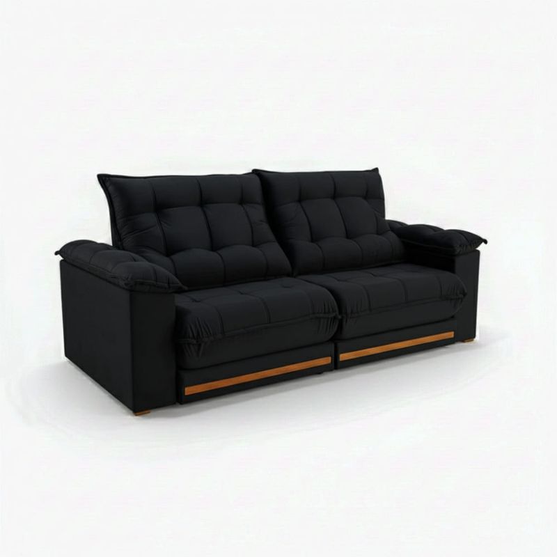 Sofá Retrátil e Reclinável Barcelona Molas Ensacadas Pillow Top 2,30m Preto - Teixeira O Sofá Barcelona é conhecido pelo conforto proporcionado pelo assento com molas ensacadas, o Pillow Top e o encosto reclinável, ideal para sala de estar. O Sofá Retrátil e Reclinável Barcelona da Teixeira Estofados é projetado para ser o ponto focal de conforto e design na sua casa. Seus 2,30m de largura garantem um espaço generoso para o lazer e o descanso diário. Este modelo oferece o que há de mais moderno em conforto: as Molas Ensacadas no assento proporcionam um suporte firme e ortopédico, ideal para a saúde postural, e o luxuoso Pillow Top garante uma maciez superficial inigualável. As funções Retrátil e Reclinável permitem que você customize o sofá para a posição perfeita. O revestimento na cor Preta é uma escolha clássica que harmoniza com qualquer estilo de decoração, do minimalista ao luxuoso. Invista neste Sofá Grande com Molas Ensacadas e leve para sua casa o máximo em relaxamento com a qualidade Teixeira. Informações técnicas Largura:2,30m Altura:1,12m Profundidade:1,20m Profundidade (Aberto/Estendido):1,80m Marca:Teixeira Estofados Cor:Preto (Pode ser referido como Preto Chumbo ou Black) Revestimento:Veludo Assento:Retrátil com Molas Ensacadas (Pocket) + Molas Bonnel (Duplo Molejo) Pillow Top:30 cm de espessura (conforme o lote/modelo) Espuma do Assento:D-28 (Alta Densidade) Encosto:Reclinável com Catraca Blindada (5 a 7 Estágios) Enchimento do Encosto:100% Fibra de Poliéster Siliconado Diferenciais:Rodízios de Silicone e Detalhe em Madeira no Rodapé Peso Sugerido:Até 140 kg por pessoa Garantia:03 meses pelo fabricante Atenção: Não nos responsabilizamos, no ato da entrega, por desmontagens, subir escadas/elevadores ou transporte por guincho para apartamentos. Eventuais despesas são de responsabilidade do cliente. Confira as dimensões deste produto e certifique-se de que passará normalmente por supostos elevadores, portas, escadas e/ou corredores de sua moradia. A tonalidade do produto pode variar entre a imagem de exibição e o item físico, devido à iluminação e à calibração de cores da sua tela. Imagens meramente ilustrativas. Os objetos que ambientam as fotos não acompanham o produto. Não realizamos a instalação dos produtos em paredes ou semelhantes. Reservamo-nos o direito de possíveis erros de digitação. Anúncio sujeito a alteração sem aviso prévio.