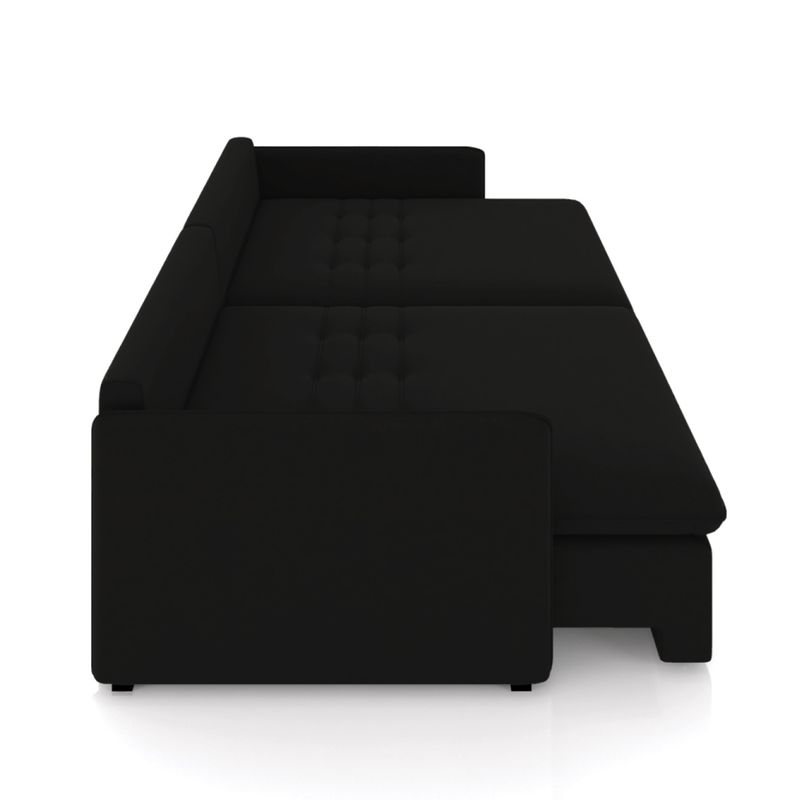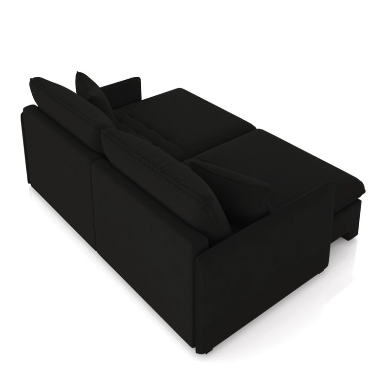 O Sofá Retrátil e Reclinável Maili 2 Lugares é a escolha perfeita para quem busca conforto e estilo em um só móvel. Com 154 cm de largura, revestido em tecido Veludo Preto, ele se destaca por sua aparência moderna e aconchegante. Produzido em madeira de lei (eucalipto), devidamente tratada e aparelhada, com reforços de cantoneiras e chapas em MDF, ideal para suportar o uso diário e manter a integridade do sofá. A estrutura metálica do mecanismo proporciona resistência e longa durabilidade, permitindo que o sofá se transforme em cama de forma segura e com facilidade. Para proporcionar conforto máximo, o assento é composto por espumas D33, molas ensacadas, molas espirais e manta acrílica, apoiadas em cintas metálicas, enquanto o encosto conta com cintas metálicas e 100% fibra siliconada, oferecendo um toque macio e relaxante. Os braços são feitos com espuma D26 para garantir um apoio confortável. O encosto reclinável possui sistema de catraca com 3 posições, permitindo ajustar o sofá de acordo com suas preferências de conforto. As almofadas soltas decorativas, além de realçar o estilo do sofá, oferecem flexibilidade para ajustar o conforto e personalizar o visual. Os pés em madeira na cor tabaco completam o design sofisticado, dando um toque elegante ao ambiente. Este maravilhoso sofá é ideal para momentos de descanso, seja assistindo a um filme ou simplesmente relaxando após um dia longo. Transforme seu espaço com o Sofá Maili. Aproveite agora! OBSERVAÇÃO IMPORTANTE: A entrega é realizada no endereço informado, não realizamos o transporte para andares superiores, como subir escadas, elevadores ou guinchos. Não realizamos montagens, desmontagens ou instalações. Todos esses serviços são de responsabilidade do comprador. Dimensões do Produto: Altura Total: 90 cm Largura Total: 154 cm Profundidade Total aberto: 155 cm Profundidade Total fechado: 115 cm Peso: 84 kg Outras Medidas: Largura total livre do assento: 140 cm Largura por lugar: 70 cm Profundidade total do assento aberto: 142 cm Profundidade total do assento fechado: 53 cm Altura do assento ao chão: 47 cm Altura do encosto: 50 cm Espessura do Braço: 7 cm Pillow: 16 cm Especificações do Produto: Estrutura: Madeira de Eucalipto/MDF. Material da Espuma: Assento D - 33; Encosto 100% Fibra Siliconada; Braço D - 26 Revestimento: Veludo Possui Pés: Sim Tipo de Pés: Pés de Madeira na cor Tabaco Possui Rodízios: Não Diferenciais: Encosto Reclinável Catraca 03 Posições Peso Suportado: 150 Kg por assento. Quantidade de Lugares: 2 Lugares Tipo de Encosto: Reclinável. Tipo de Assento: Retrátil. Diferenciais: Almofadas Decorativas Soltas; Assento com percintas elasticas, molas espirais ensacadas e manta acrílica. Encosto reclinável com percintas elasticas. Manual de Montagem: Sim Montagem: O produto é enviado montado, sendo necessário somente parafusar os pés e fazer a junção dos módulos. Garantia: 90 dias contra defeito de fabricação Instruções de Limpeza: Utilizar um pano limpo e levemente úmido Você irá Receber: 01 Sofá Entregue em: 02 Volumes