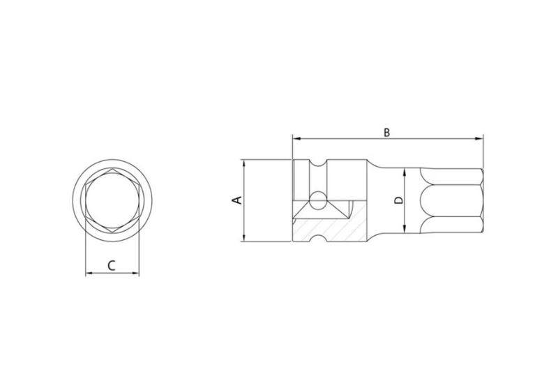 Os soquetes de impacto da Tramontina PRO são produzidos com sistema Hyper Drive que melhora o acoplamento do produto ao parafuso ou porca, reduzindo as tensões geradas no aperto e prolongando a sua vida útil. Escolha o tamanho e perfil ideal para a sua necessidade e mãos à obra. Maior resistência, conforto e segurança em suas mãos. Forjado em aço cromo molibdênio e temperado.Acabamento fosfatizado.Perfil Hyper Drive (de cantos arredondados).Um grande avanço na produção dos soquetes é a introdução do conceito "Hyper Drive". Este novo perfil melhora o acoplamento do soquete na porca ou parafuso, reduzindo as tensões geradas no aperto, prolongando a vida do soquete e do elemento de fixação.Os soquetes são submetidos a testes rigorosos de torque e de dureza para atender a norma DIN 1711-1.Os soquetes de impacto são produzidos com um aço ligado com cromo e molibdênio (Cr-Mo) na composição. Isto garante, após o tratamento térmico, uma maior resistência ao desgaste se comparados aos soquetes normais. Por isso, são os recomendados para a utilização com parafusadeiras elétricas ou pneumáticas.Afrouxar e apertar parafusos com cabeça sextavada interna utilizando parafusadeiras pneumáticas.As ferramentas são produzidas e testadas conforme normas específicas. Dimensões A: 24.8 mmB: 60.0 mmC: 8.0 mmD: 10.5 mmSKU: 15008802