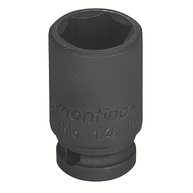 Soquete de Impacto Sextavado em Aço Cromo Molibdênio 1/2" - Encaixe 1/4" Tramontina PRO Tramontina - Soquete de Impacto Sextavado em Aço Cromo Molibdênio 1/2" - Encaixe 1/4" Tramontina PRO Os soquetes de impacto da Tramontina PRO são produzidos com sistema Hyper Drive que melhora o acoplamento do produto ao parafuso ou porca, reduzindo as tensões geradas no aperto e prolongando a sua vida útil. Escolha o tamanho e perfil ideal para a sua necessidade e mãos à obra. Maior resistência, conforto e segurança em suas mãos. Forjado em aço cromo molibdênio e temperado. Acabamento fosfatizado.Perfil Hyper Drive (de cantos arredondados).DIN 3129.Um grande avanço na produção dos soquetes é a introdução do conceito ''Hyper Drive''. Este novo perfil melhora o acoplamento do soquete na porca ou parafuso, reduzindo as tensões geradas no aperto, prolongando a vida do soquete e do elemento de fixação.Os soquetes são submetidos a testes rigorosos de torque e de dureza para atender a norma DIN 1711-1. Os soquetes de impacto são produzidos com um aço ligado com cromo e molibdênio (Cr-Mo) na composição. Isto garante, após o tratamento térmico, uma maior resistência ao desgaste se comparados aos soquetes normais. Por isso, são os recomendados para a utilização com parafusadeiras elétricas ou pneumáticas.Afrouxar e apertar parafusos sextavados utilizando parafusadeiras pneumáticas.Amplamente utilizado na indústria de montagem e desmontagem de motocicletas. As ferramentas são produzidas e testadas conforme normas especÃficas. Cuidados com o produto Use óculos, luvas e outros equipamentos de proteção individual (EPIs) de acordo com a tarefa a ser executada. Selecione o tamanho do soquete conforme a bitola do parafuso ou porca. Para operações com parafusadeiras pneumáticas ou elétricas, use soquetes de impacto. Inspecione os soquetes antes de sua utilização. Soquetes que apresentam trincas ou desgaste excessivo devem ser substituÃdos. Armazene em local limpo e seco. Garantia Garantia total contra vÃcios ou defeitos de fabricação. - - Características Gerais do Produto: Garantia: • 3 Meses