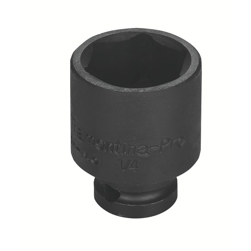 Soquete de Impacto Sextavado em Aço Cromo Molibdênio 9/16" - Encaixe 1/4" Tramontina PRO Tramontina - Soquete de Impacto Sextavado em Aço Cromo Molibdênio 9/16" - Encaixe 1/4" Tramontina PRO Os soquetes de impacto da Tramontina PRO são produzidos com sistema Hyper Drive que melhora o acoplamento do produto ao parafuso ou porca, reduzindo as tensões geradas no aperto e prolongando a sua vida útil. Escolha o tamanho e perfil ideal para a sua necessidade e mãos à obra. Maior resistência, conforto e segurança em suas mãos. Forjado em aço cromo molibdênio e temperado. Acabamento fosfatizado.Perfil Hyper Drive (de cantos arredondados).DIN 3129.Um grande avanço na produção dos soquetes é a introdução do conceito ''Hyper Drive''. Este novo perfil melhora o acoplamento do soquete na porca ou parafuso, reduzindo as tensões geradas no aperto, prolongando a vida do soquete e do elemento de fixação.Os soquetes são submetidos a testes rigorosos de torque e de dureza para atender a norma DIN 1711-1. Os soquetes de impacto são produzidos com um aço ligado com cromo e molibdênio (Cr-Mo) na composição. Isto garante, após o tratamento térmico, uma maior resistência ao desgaste se comparados aos soquetes normais. Por isso, são os recomendados para a utilização com parafusadeiras elétricas ou pneumáticas.Afrouxar e apertar parafusos sextavados utilizando parafusadeiras pneumáticas.Amplamente utilizado na indústria de montagem e desmontagem de motocicletas. As ferramentas são produzidas e testadas conforme normas especÃficas. Cuidados com o produto Use óculos, luvas e outros equipamentos de proteção individual (EPIs) de acordo com a tarefa a ser executada. Selecione o tamanho do soquete conforme a bitola do parafuso ou porca. Para operações com parafusadeiras pneumáticas ou elétricas, use soquetes de impacto. Inspecione os soquetes antes de sua utilização. Soquetes que apresentam trincas ou desgaste excessivo devem ser substituÃdos. Armazene em local limpo e seco. Garantia Garantia total contra vÃcios ou defeitos de fabricação. - - Características Gerais do Produto: Garantia: • 3 Meses