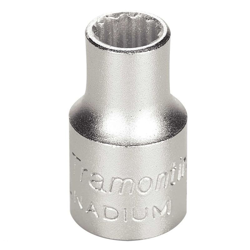 Soquete Estriado Aço Cromo Vanádio 10mm - Encaixe 3/8" Tramontina PRO Tramontina - Os soquetes da Tramontina PRO são produzidos com sistema Hyper Drive que melhora o acoplamento do produto ao parafuso ou porca, reduzindo as tensões geradas no aperto e prolongando a sua vida útil. Escolha o tamanho e perfil ideal para a sua necessidade e mãos à obra. Orientações Soquete forjado em aço cromo vanádio e temperado. Acabamento cromado.Perfil Hyper Drive (de cantos arredondados). DIN 3124.Suporte plástico.Um grande avanço na produção dos soquetes é a introdução do conceito "Hyper Drive". Este novo perfil melhora o acoplamento do soquete na porca ou parafuso, reduzindo as tensões geradas no aperto, prolongando a vida do soquete e do elemento de fixação.Os soquetes são submetidos a testes rigorosos de torque e de dureza para atender a norma DIN 1711-1.Afrouxar e apertar parafusos e porcas sextavados.As ferramentas são produzidas e testadas conforme normas específicas. Características Gerais EAN13 7891114132700 DUN14 17891114132707 NCM 8204.20.00 0,0500 kg. 0,0500 kg. Metragem 0,000110 m³. 110x 50x 20 mm. 30x 17x 17 mm. Dimensão Extra A 14,5 mm. Dimensão Extra B 30,0 mm. Dimensão Extra C 17,0 mm. Dimensão Extra D 10,0 mm. Observações Use óculos, luvas e outros equipamentos de proteção individual (EPIs) de acordo com a tarefa a ser executada. Selecione o tamanho do soquete conforme a bitola do parafuso ou porca. Para operações com parafusadeiras pneumáticas ou elétricas, use soquetes de impacto. Inspecione os soquetes antes de sua utilização. Soquetes que apresentam trincas ou desgaste excessivo devem ser substituídos. - Armazene em local limpo e seco. Características Gerais do Produto: Garantia: • 1 Ano