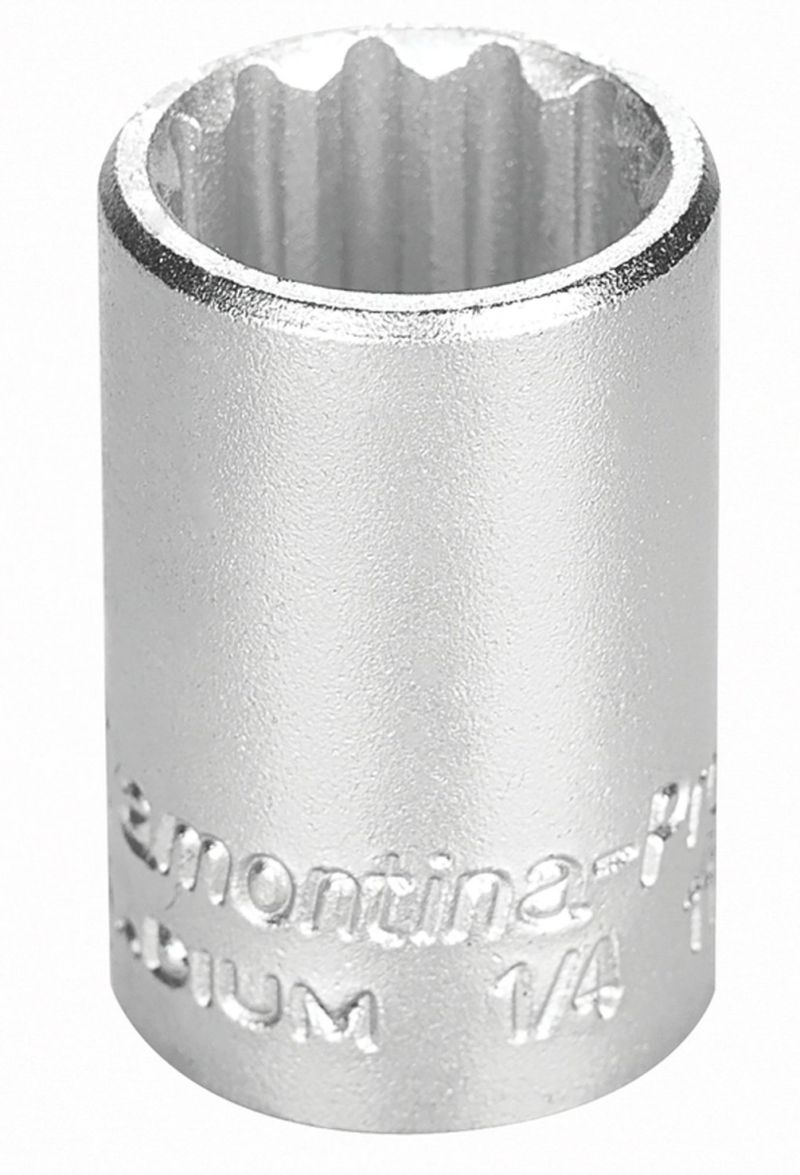 Soquete Estriado Aço Cromo Vanádio 11mm - Encaixe 1/4" Tramontina PRO Tramontina - Os soquetes da Tramontina PRO são produzidos com sistema Hyper Drive que melhora o acoplamento do produto ao parafuso ou porca, reduzindo as tensões geradas no aperto e prolongando a sua vida útil. Escolha o tamanho e perfil ideal para a sua necessidade e mãos à obra. Orientações Soquete forjado em aço cromo vanádio e temperado. Acabamento cromado.Perfil Hyper Drive (de cantos arredondados). DIN 3124.Suporte plástico.Um grande avanço na produção dos soquetes é a introdução do conceito "Hyper Drive". Este novo perfil melhora o acoplamento do soquete na porca ou parafuso, reduzindo as tensões geradas no aperto, prolongando a vida do soquete e do elemento de fixação.Os soquetes são submetidos a testes rigorosos de torque e de dureza para atender a norma DIN 1711-1.Afrouxar e apertar parafusos e porcas sextavados.As ferramentas são produzidas e testadas conforme normas específicas. Observações Use óculos, luvas e outros equipamentos de proteção individual (EPIs) de acordo com a tarefa a ser executada. Selecione o tamanho do soquete conforme a bitola do parafuso ou porca. Para operações com parafusadeiras pneumáticas ou elétricas, use soquetes de impacto. Inspecione os soquetes antes de sua utilização. Soquetes que apresentam trincas ou desgaste excessivo devem ser substituídos. - Armazene em local limpo e seco. Características Gerais EAN13 7891114132045 DUN14 17891114132042 NCM 8204.20.00 0,0300 kg. 0,0300 kg. Metragem 0,000119 m³. 85x 70x 20 mm. 25x 16x 16 mm. Dimensão Extra A 16,0 mm. Dimensão Extra B 16,0 mm. Dimensão Extra C 25,0 mm. Dimensão Extra D 11,0 mm. Características Gerais do Produto: Garantia: • 1 Ano