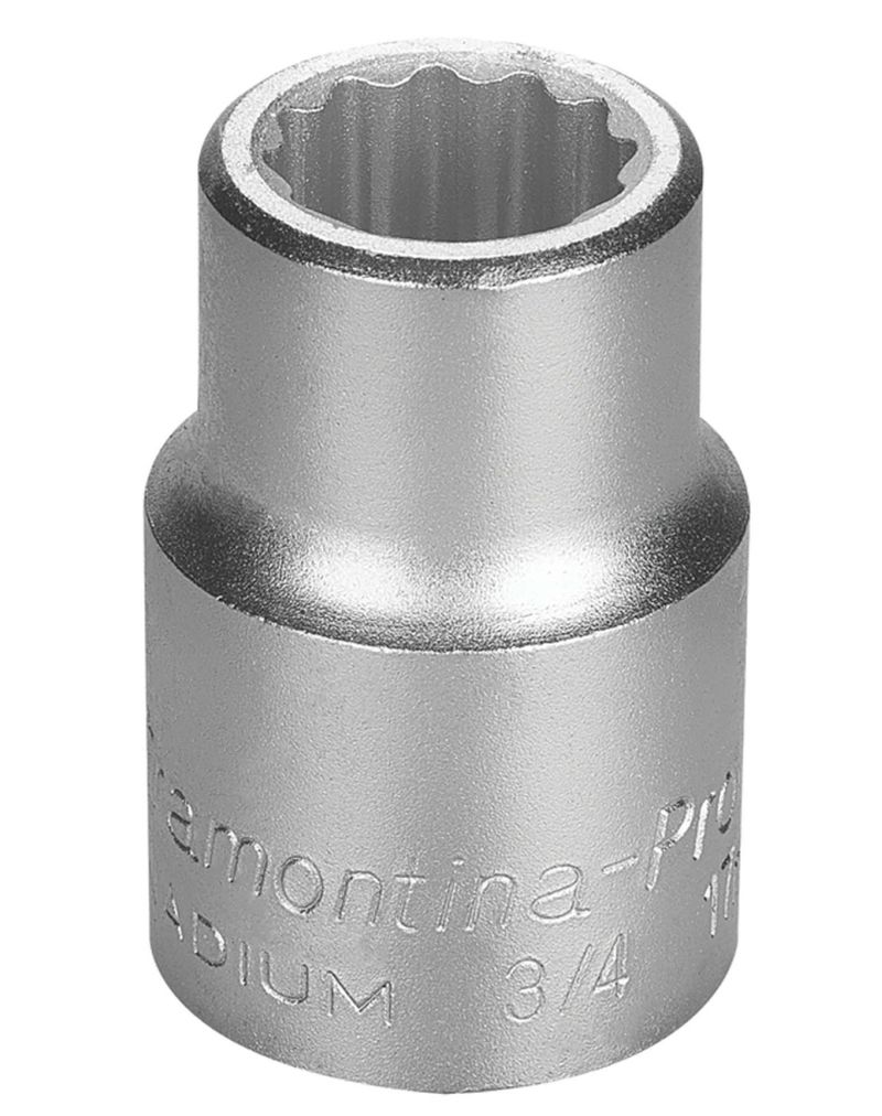 Soquete Estriado Aço Cromo Vanádio 18mm - Encaixe 3/4" Tramontina - Os soquetes da Tramontina PRO são produzidos com sistema Hyper Drive que melhora o acoplamento do produto ao parafuso ou porca, reduzindo as tensões geradas no aperto e prolongando a sua vida útil. Escolha o tamanho e perfil ideal para a sua necessidade e mãos à obra. Orientações Soquete forjado em aço cromo vanádio e temperado.Acabamento cromado.Perfil Hyper Drive (de cantos arredondados).DIN 3124.Suporte plástico.Um grande avanço na produção dos soquetes é a introdução do conceito "Hyper Drive". Este novo perfil melhora o acoplamento do soquete na porca ou parafuso, reduzindo as tensões geradas no aperto, prolongando a vida do soquete e do elemento de fixação.Os soquetes são submetidos a testes rigorosos de torque e de dureza para atender a norma DIN 1711-1.Afrouxar e apertar parafusos e porcas sextavados.As ferramentas são produzidas e testadas conforme normas específicas. Observações Use óculos, luvas e outros equipamentos de proteção individual (EPIs) de acordo com a tarefa a ser executada. Selecione o tamanho do soquete conforme a bitola do parafuso ou porca. Para operações com parafusadeiras pneumáticas ou elétricas, use soquetes de impacto. Inspecione os soquetes antes de sua utilização. Soquetes que apresentam trincas ou desgaste excessivo devem ser substituídos. - Armazene em local limpo e seco. Características Gerais EAN13 7891114133462 DUN14 17891114133469 NCM 8204.20.00 0,1500 kg. 0,1500 kg. Metragem 0,000039 m³. 28x 28x 50 mm. 57x 36x 36 mm. Dimensão Extra A 28,0 mm. Dimensão Extra B 57,0 mm. Dimensão Extra C 36,0 mm. Dimensão Extra D 18,0 mm. Tamanho 18 mm Características Gerais do Produto: Garantia: • 1 Ano